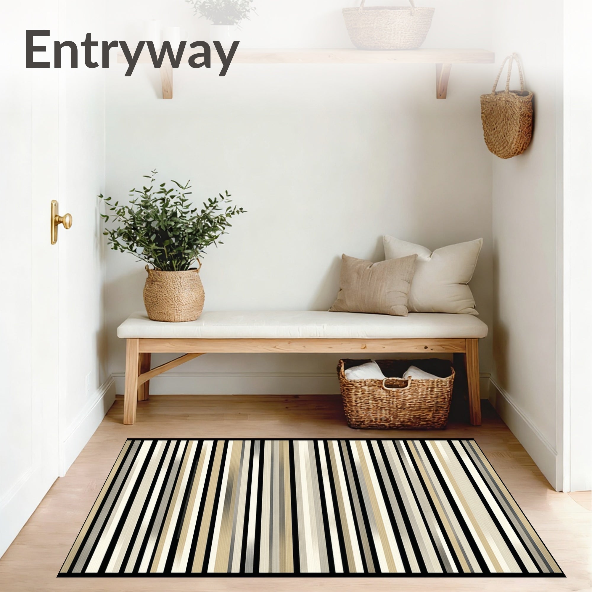 Black and Beige Striped Area with Chic Geometric for Decor(Beige)