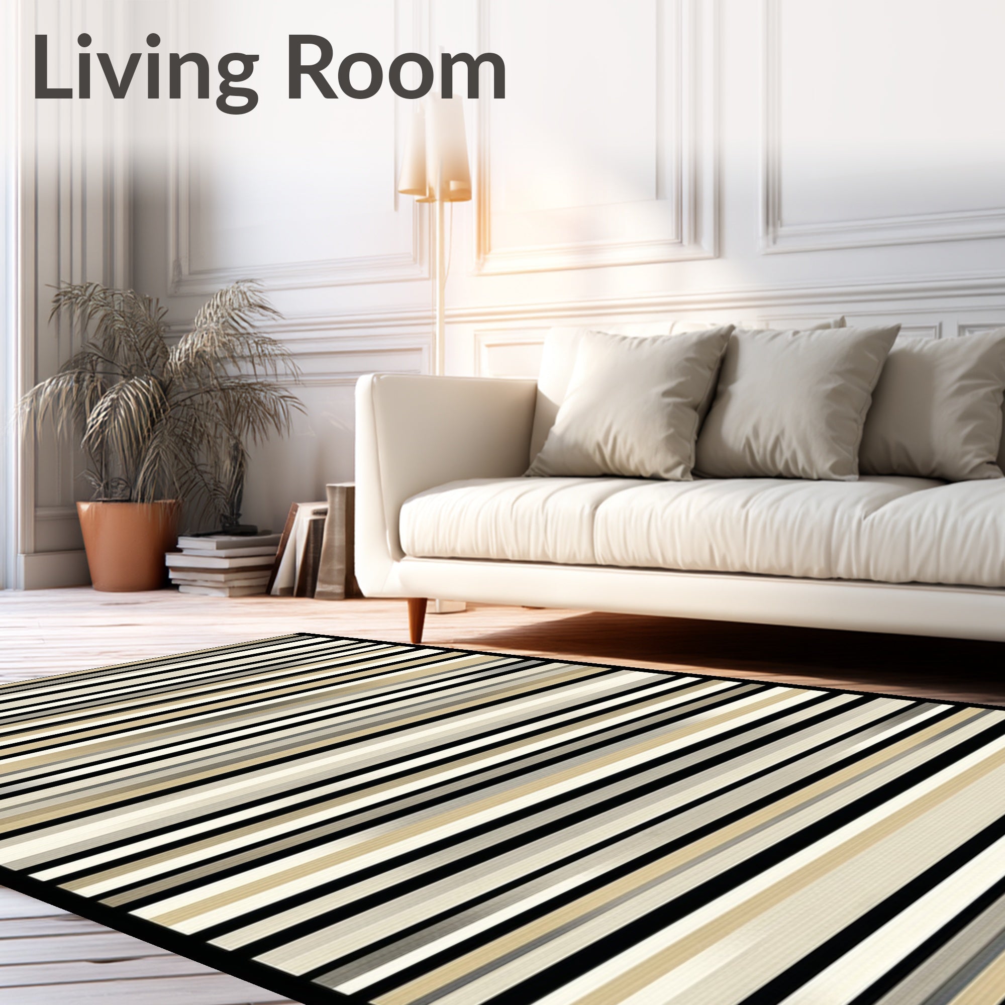 Ultra Soft Area Rug, Non Slip, Stain Resistant, Washable Area Rugs for Living Room, Bedroom, Black and Beige Striped Area with Chic Geometric for Decor(Beige) Overview: