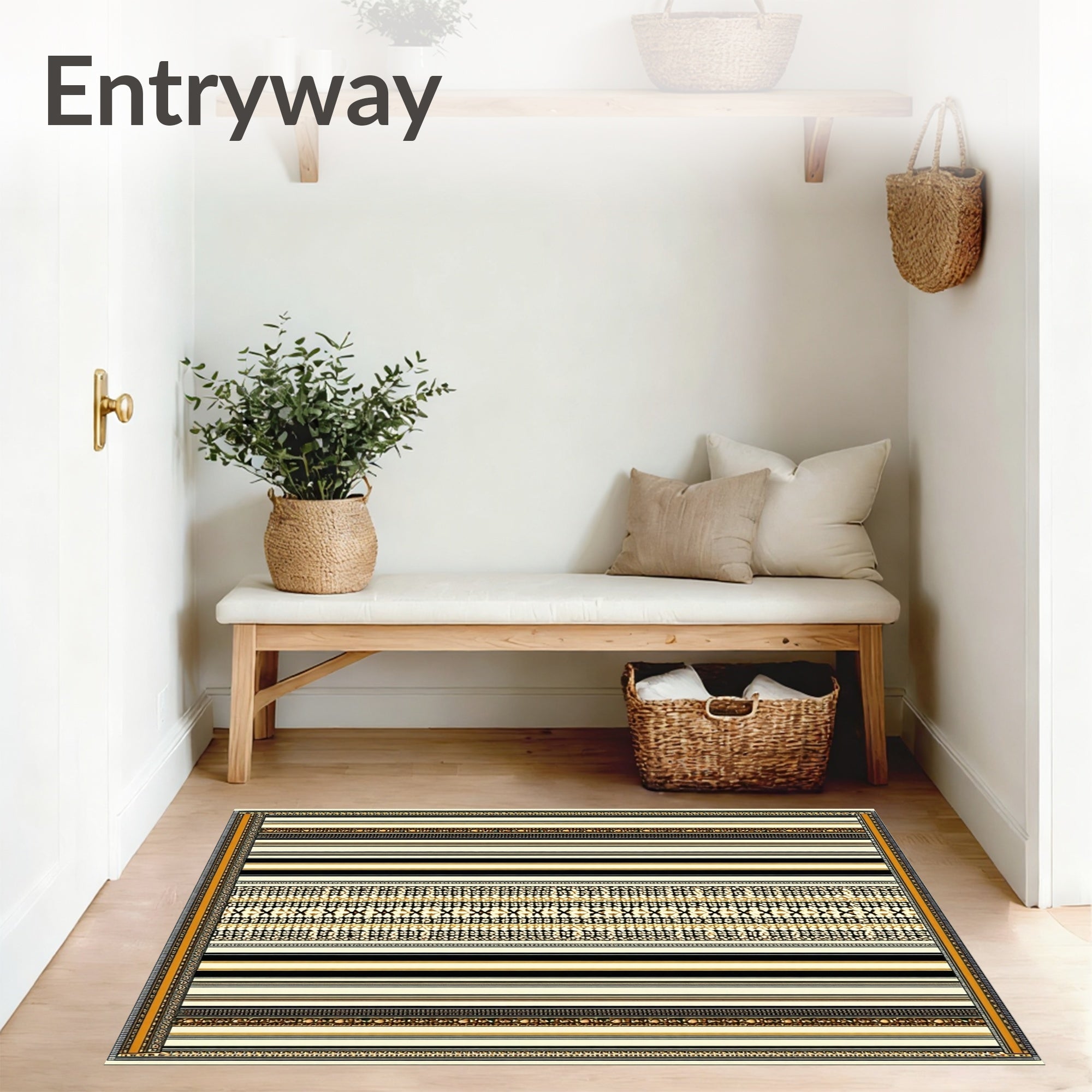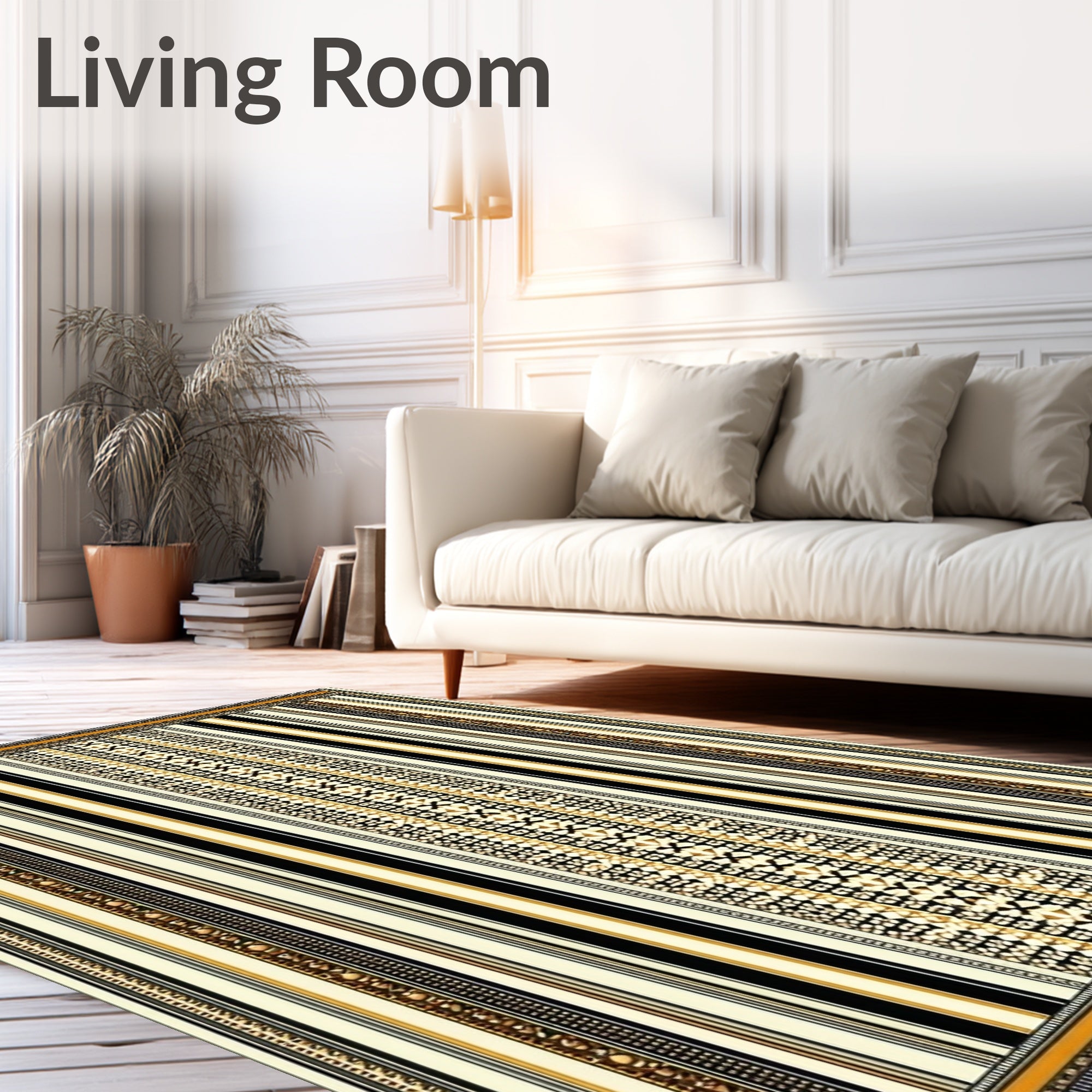 Ultra Soft Area Rug, Non Slip, Stain Resistant, Washable Area Rugs for Living Room, Bedroom, Black and Beige Striped Area(Black) Overview: