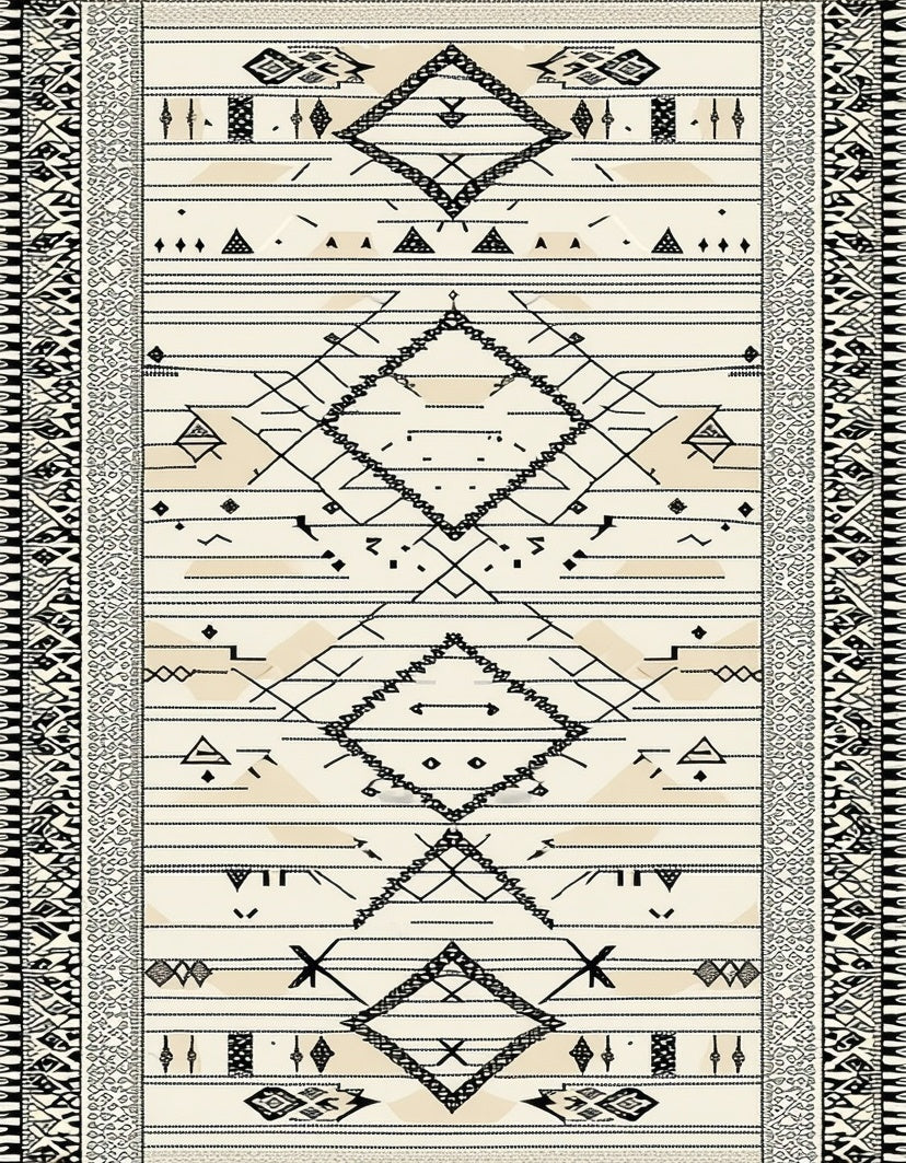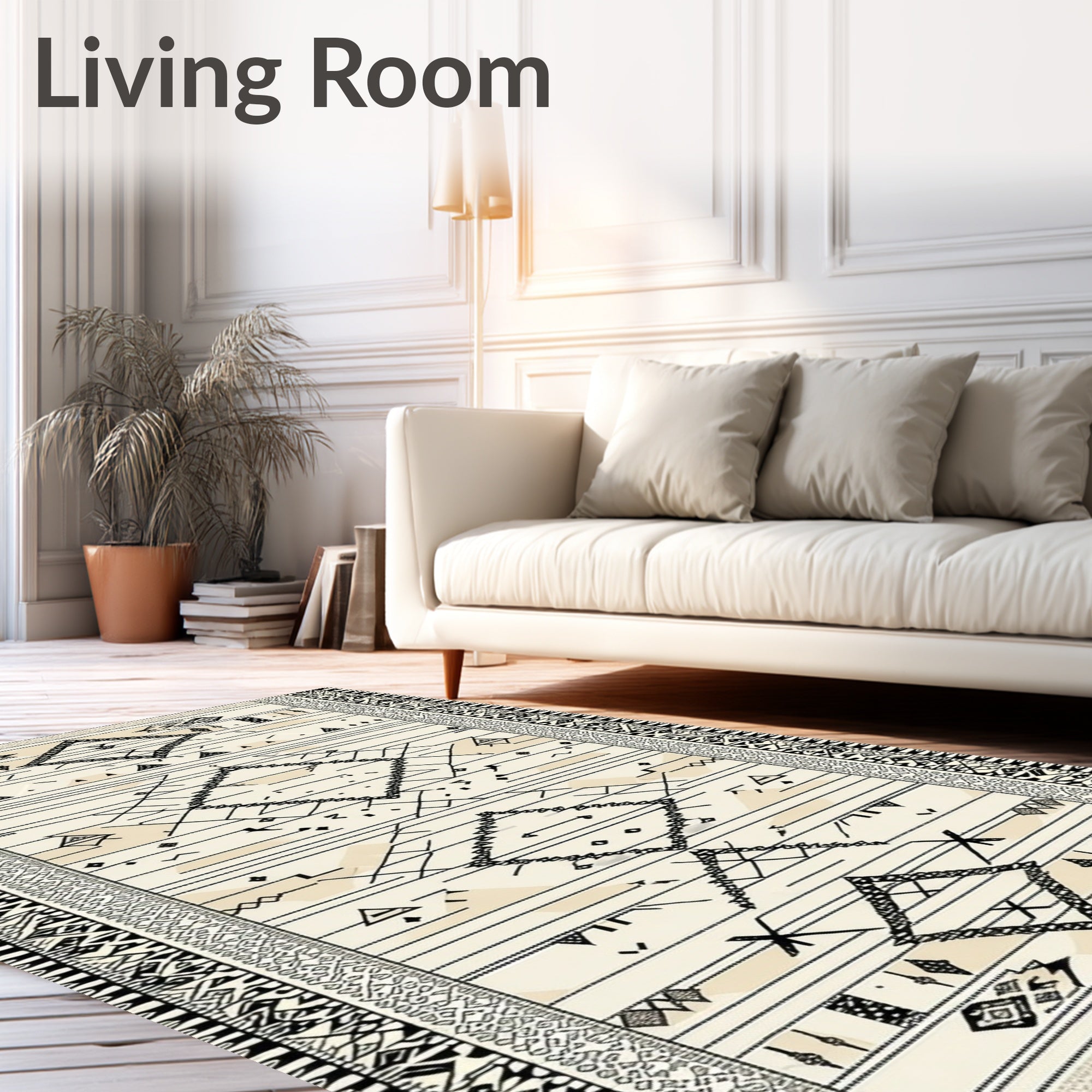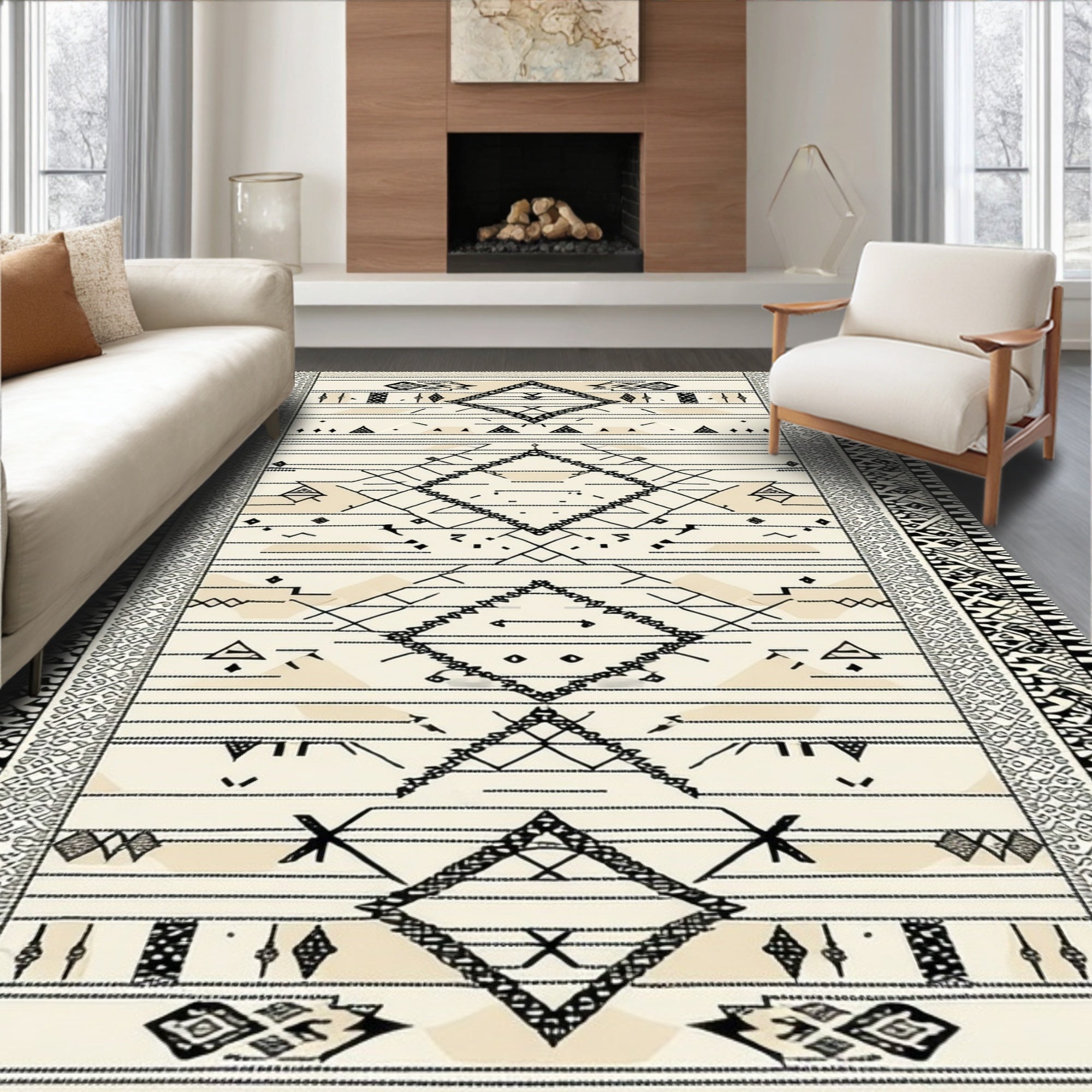 Ultra Soft Area Rug, Non Slip, Stain Resistant, Washable Area Rugs for Living Room, Bedroom, Black and Beige With Interlocking Tribal Lines(Beige) Overview:
