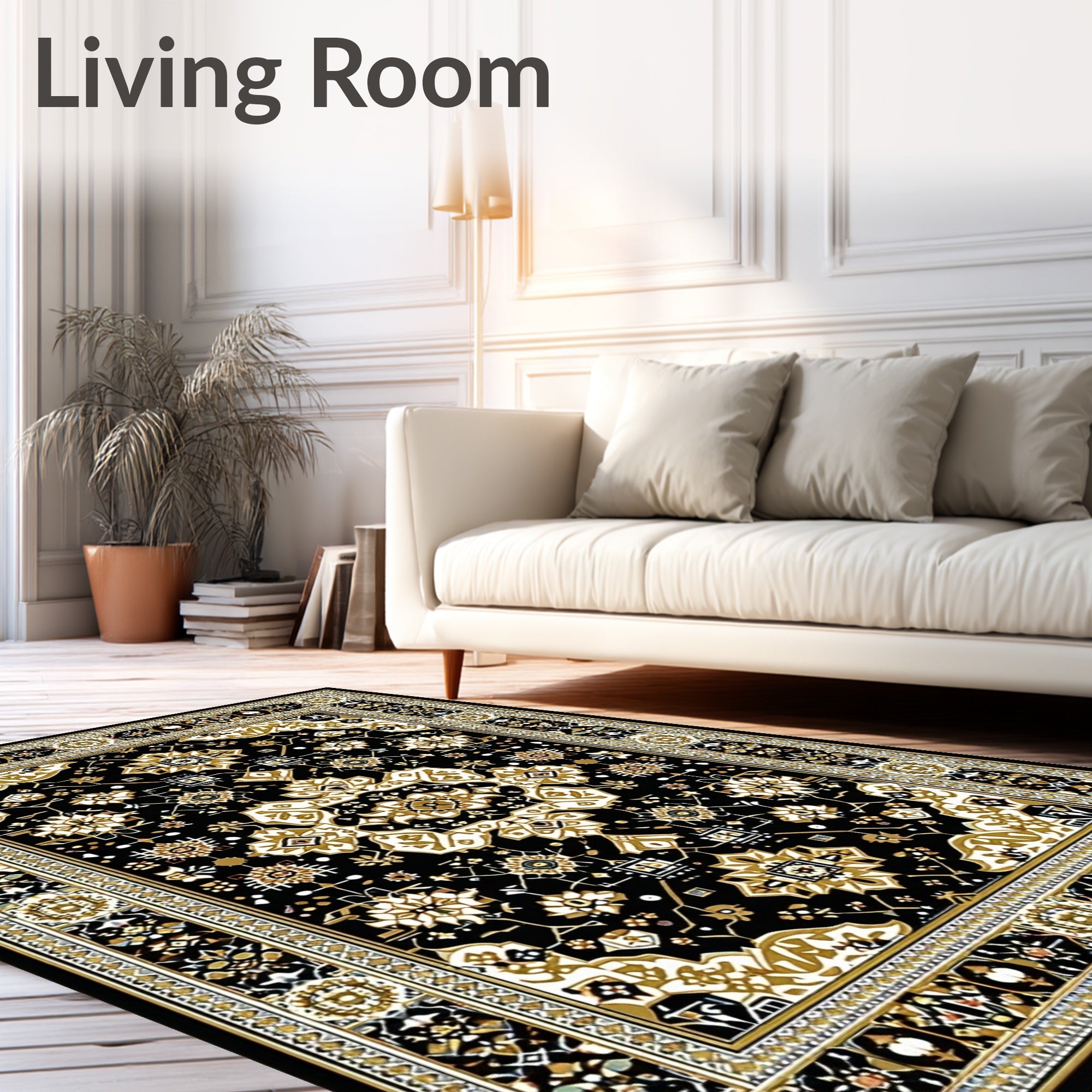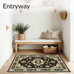 Ultra Soft Area Rug, Non Slip, Stain Resistant, Washable Area Rugs for Living Room, Bedroom, Black and Beige with Luxurious Oriental Medallion Geometric Details(Black) Overview: