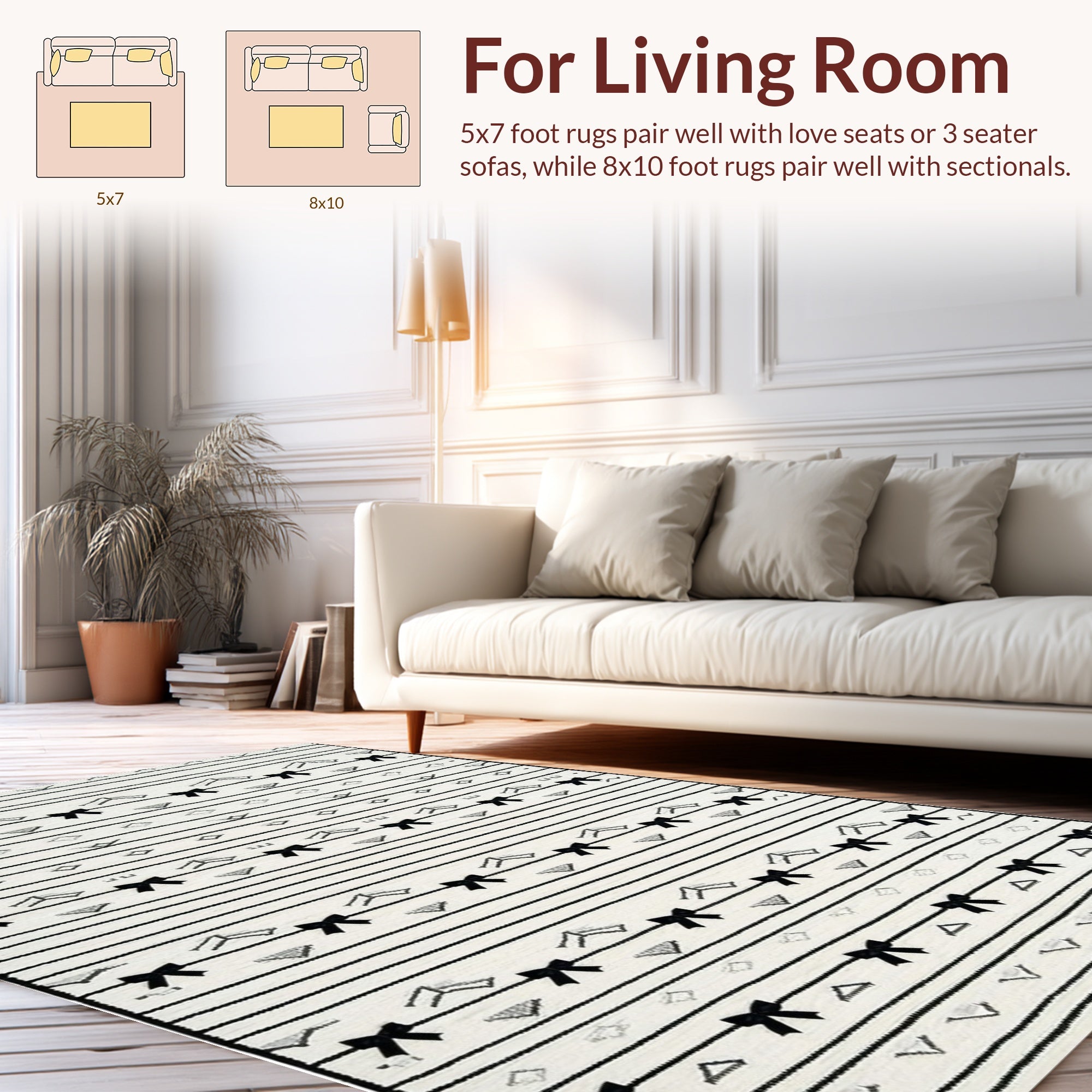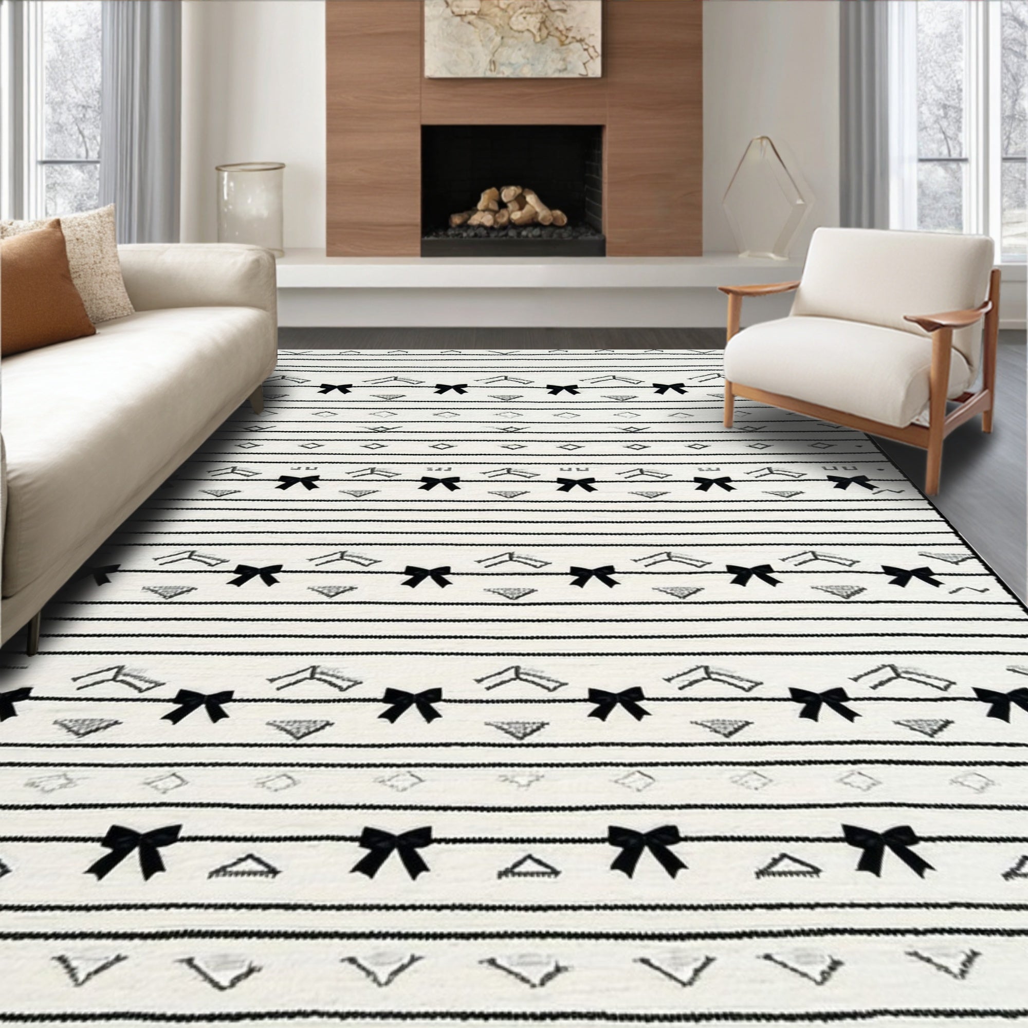 Ultra Soft Area Rug, Non Slip, Stain Resistant, Washable Area Rugs for Living Room, Bedroom, Black Bow Rug: Boho Chic Aesthetic Decor(Black) Overview: