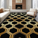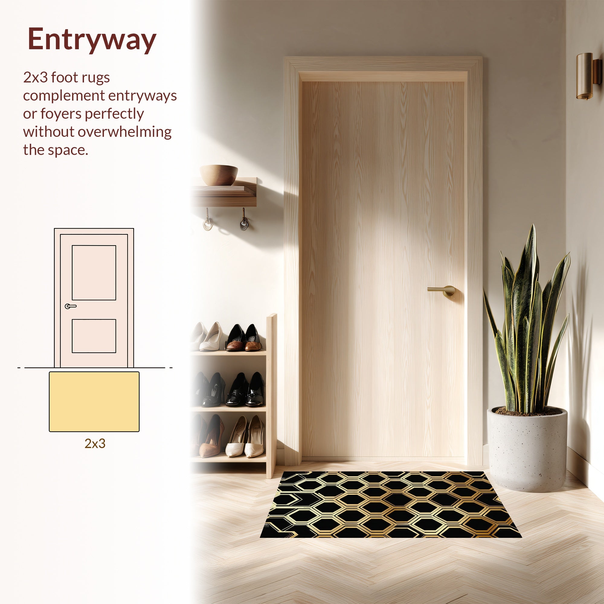 Flatwoven High Traffic Area Rug, Black & Gold Hexagon, Non Slip, Stain Resistant, Washable Area Rugs for Living Room, Bedroom (Gold) Overview: