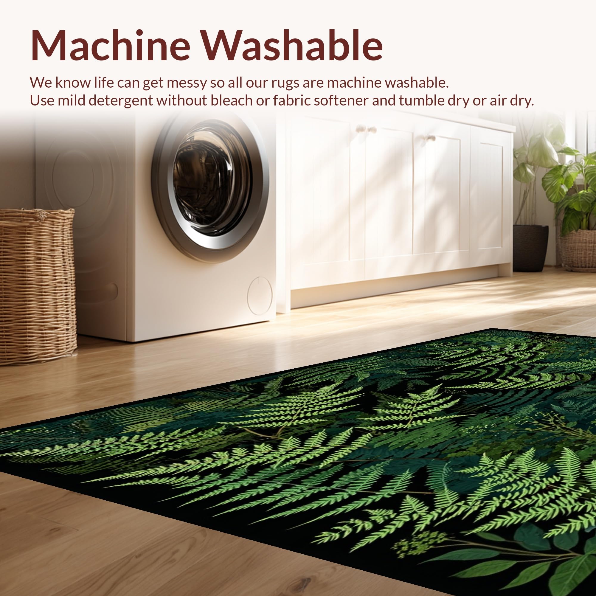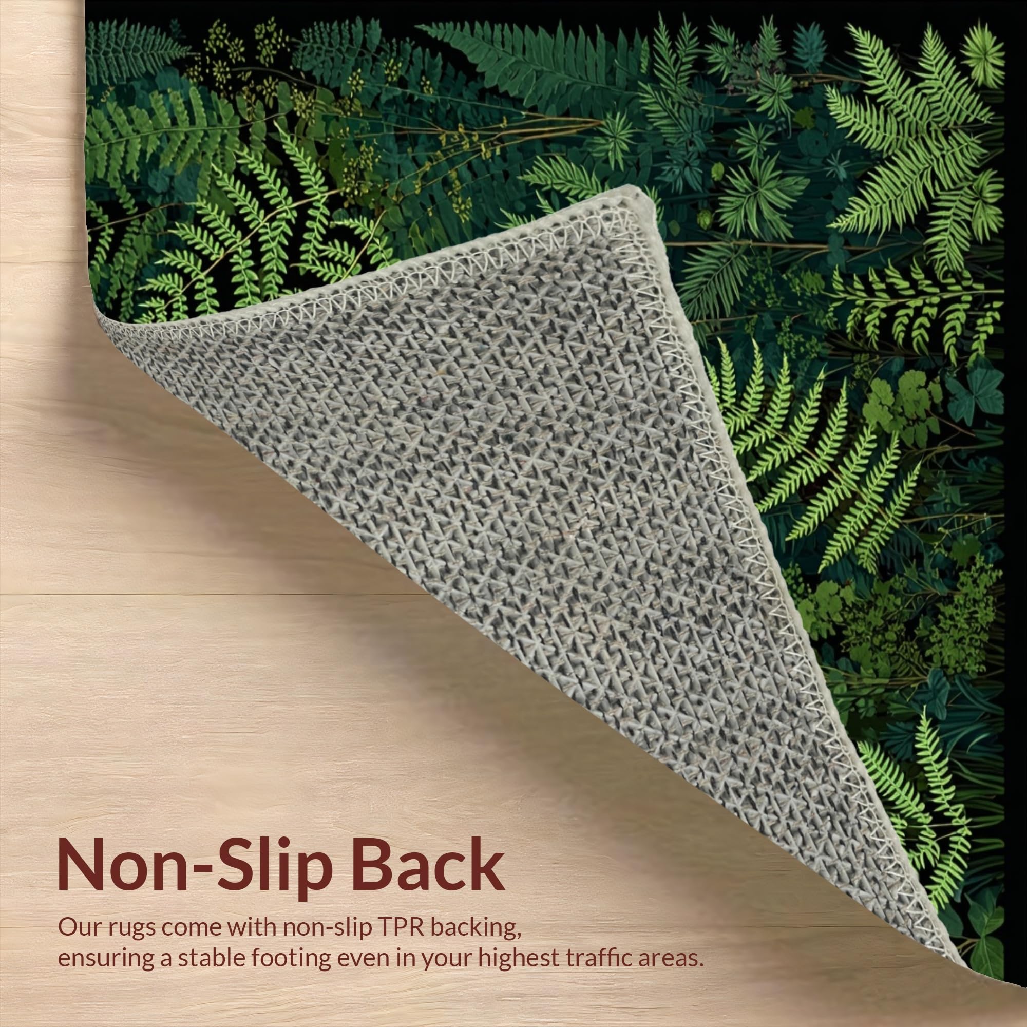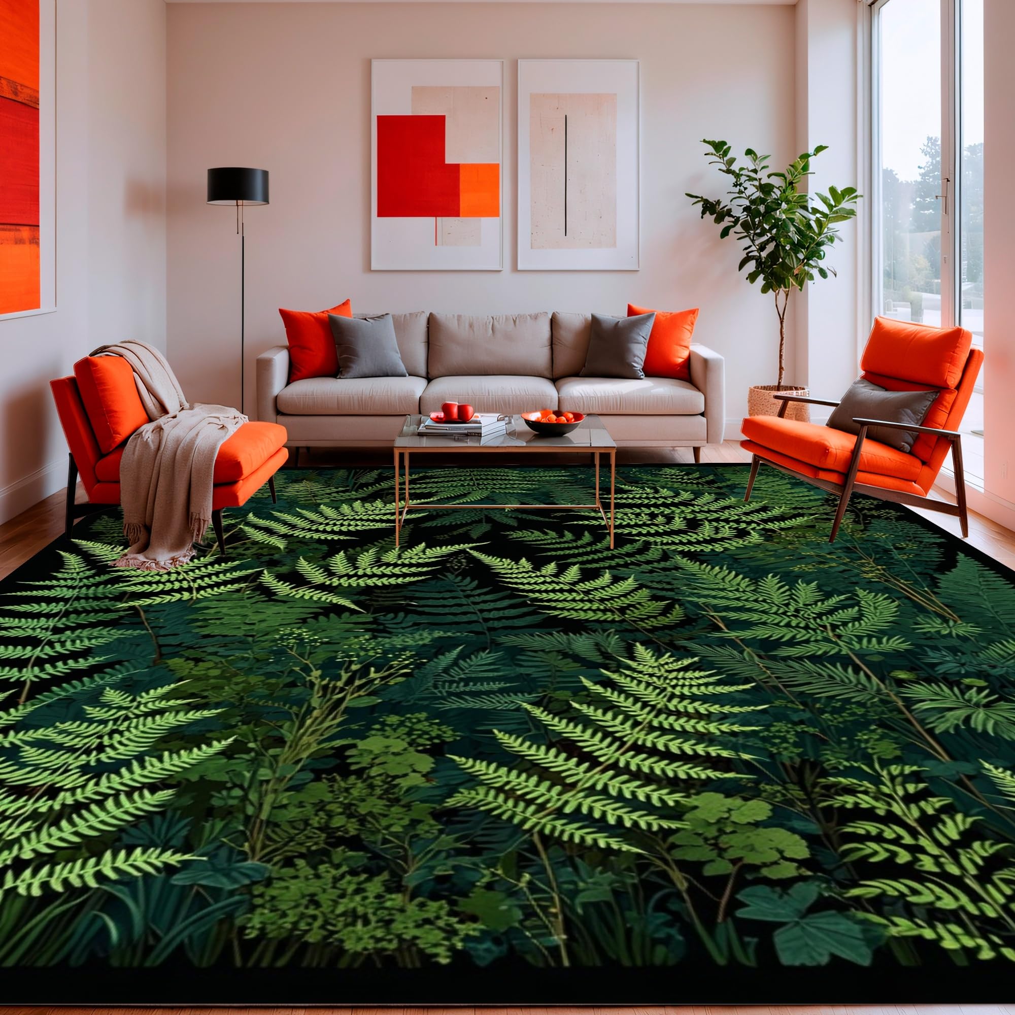 Ultra Soft Area Rug, Non Slip, Stain Resistant, Washable Area Rugs for Living Room, Bedroom, Black Woodland Washable Floral Rug Forest Fern Botanical Area Carpet(Green) Overview: