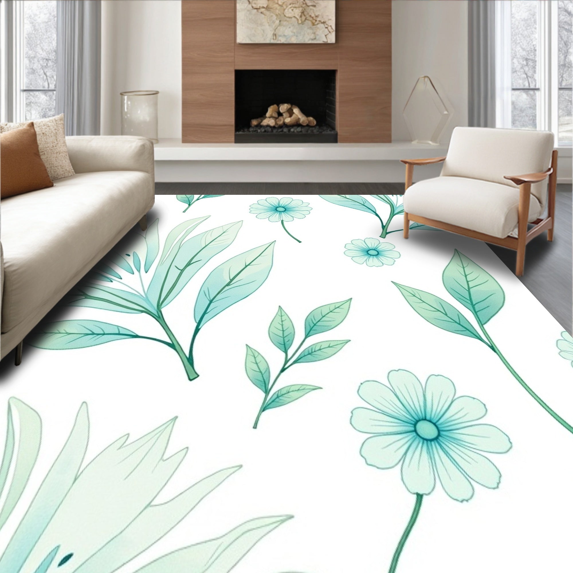 Ultra Soft Area Rug, Non Slip, Stain Resistant, Washable Area Rugs for Living Room, Bedroom, Blooming Floral Artistic Embellishment(White) Overview: