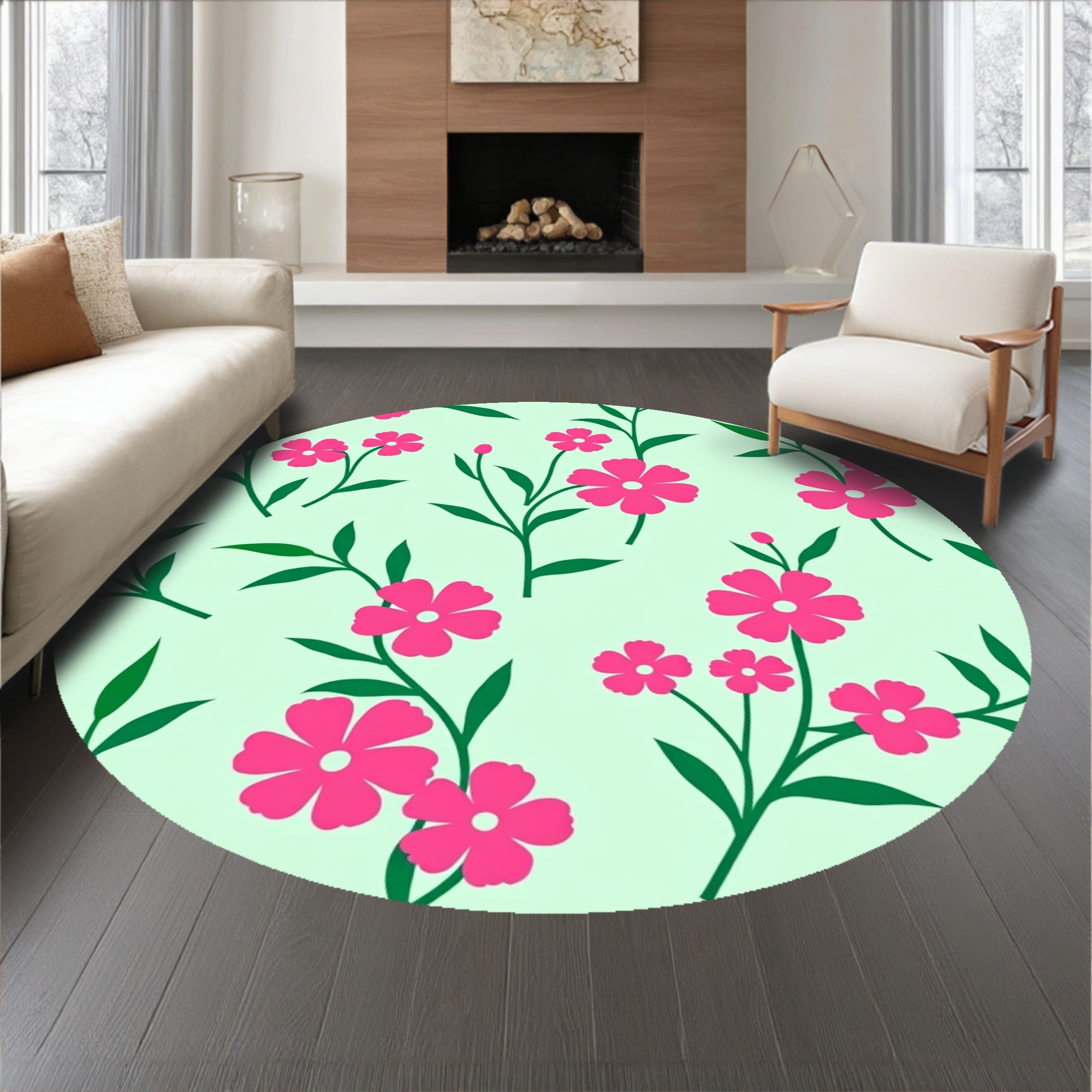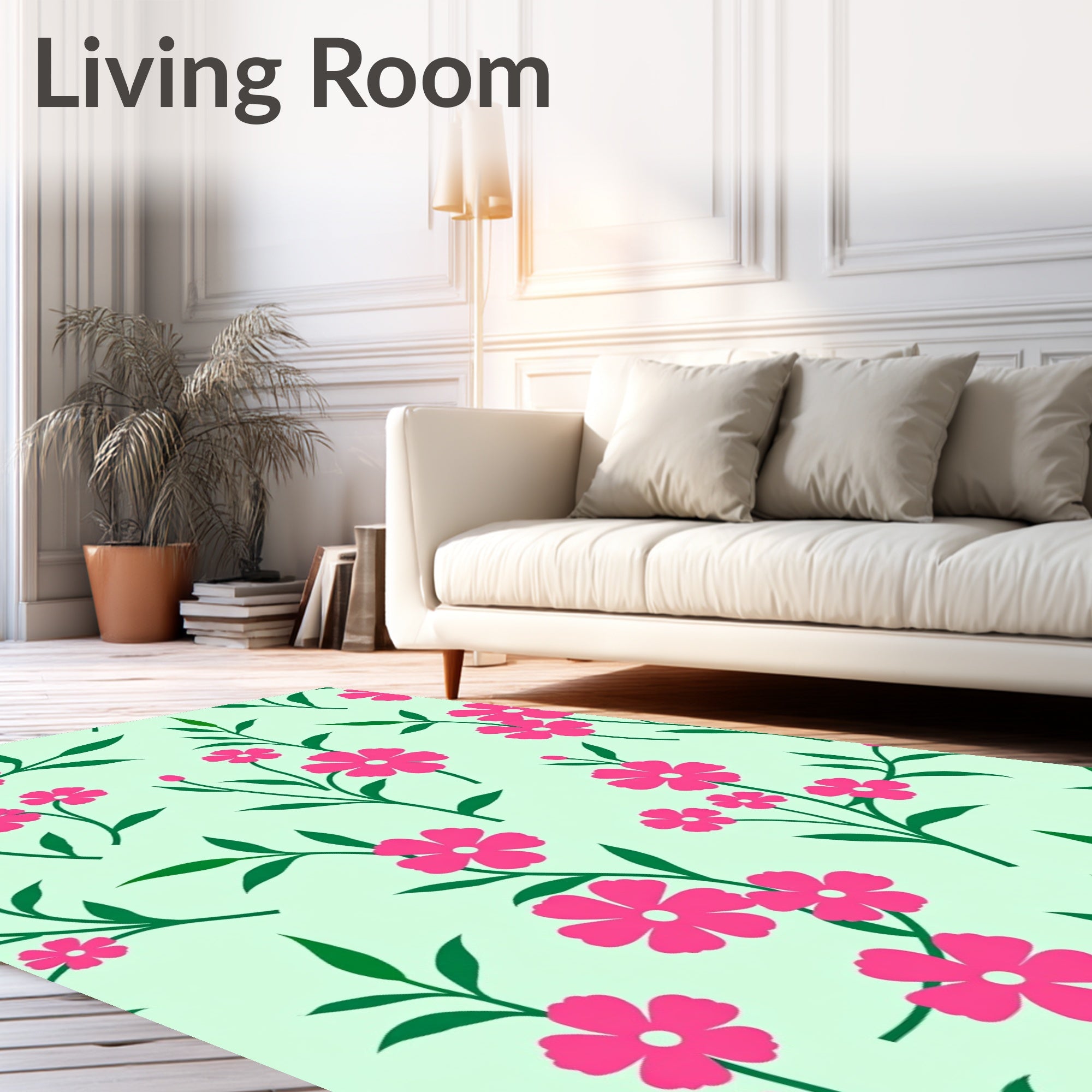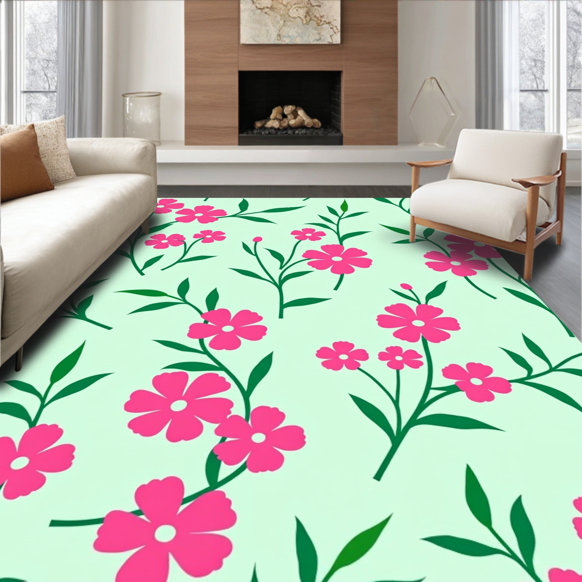 Ultra Soft Area Rug, Non Slip, Stain Resistant, Washable Area Rugs for Living Room, Bedroom, Blooming Garden Romance with Interlaced Petal Sprays and Botanical Silhouettes(Pink) Overview: