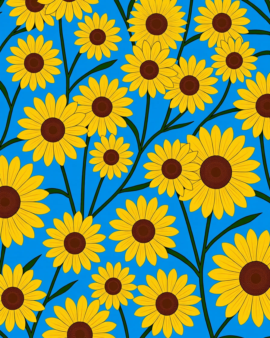 Blooming Helianthus Artistic Floor Covering(Blue)