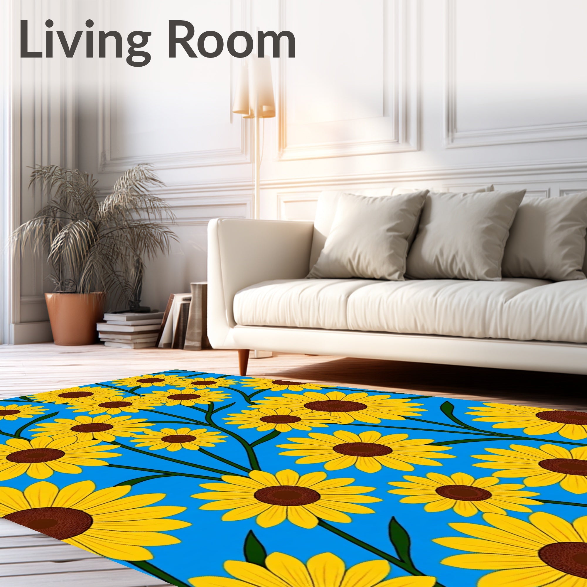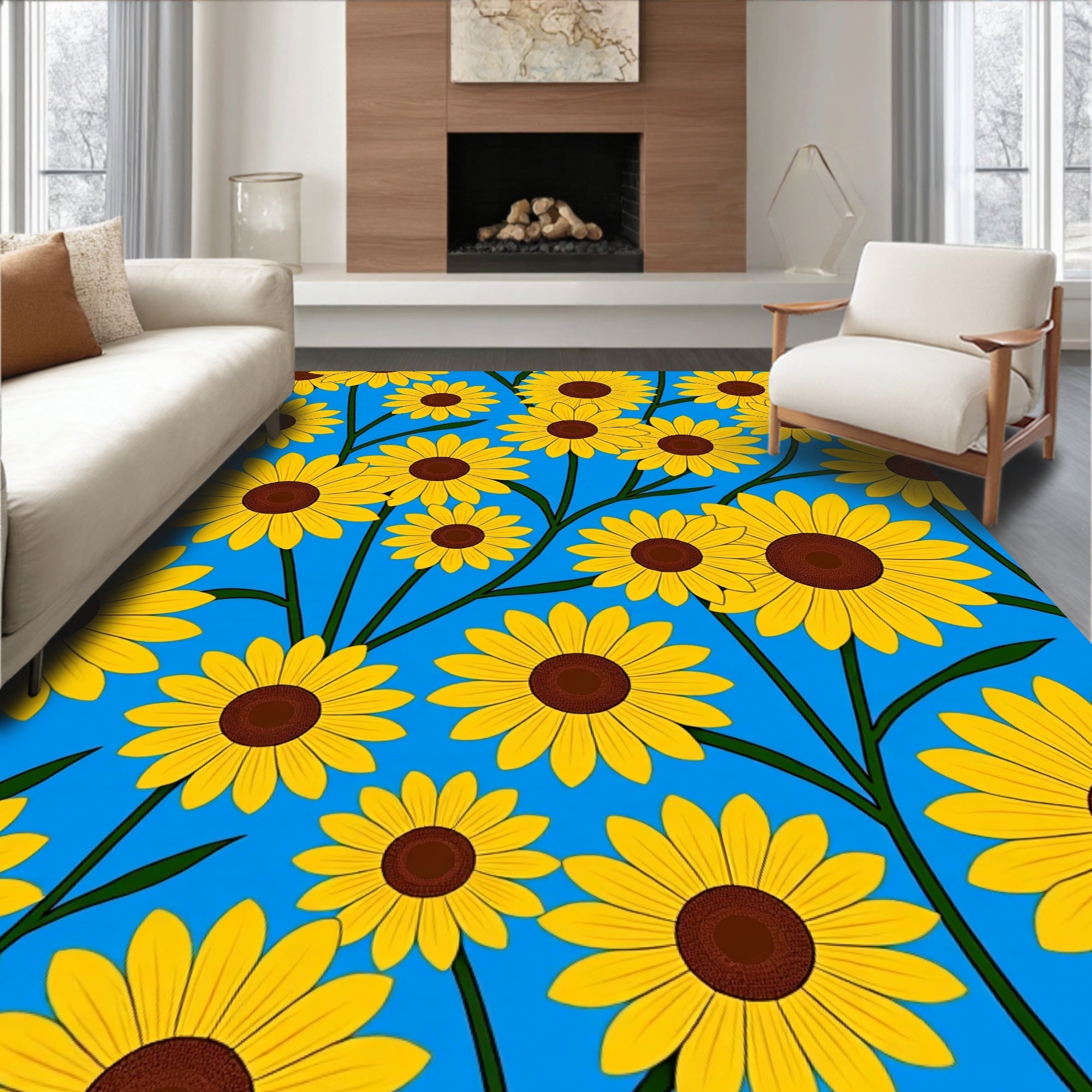 Ultra Soft Area Rug, Non Slip, Stain Resistant, Washable Area Rugs for Living Room, Bedroom, Blooming Helianthus Artistic Floor Covering(Blue) Overview: