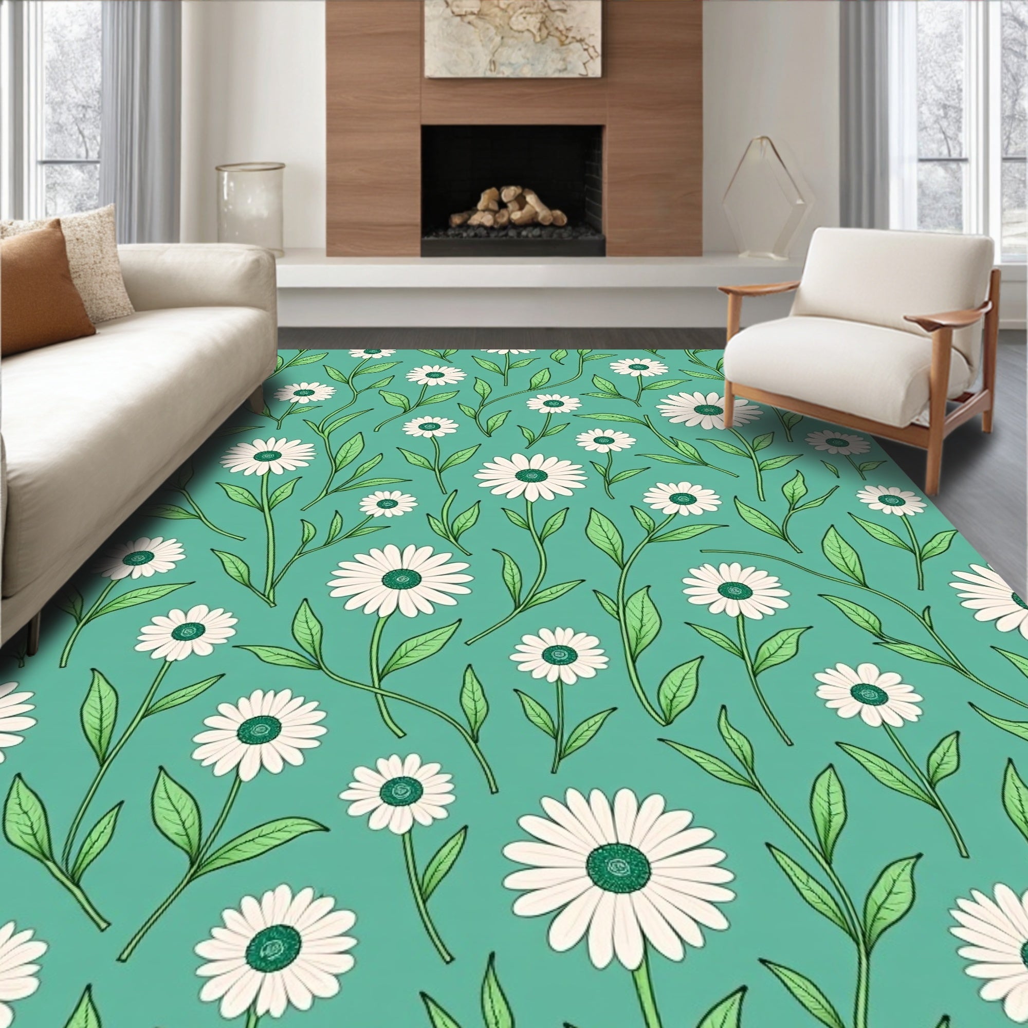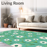 Flatwoven High Traffic Area Rug, Blooming Meadow Floral Tapestry With Elegant Botanical Motifs, Non Slip, Stain Resistant, Washable Area Rugs for Living Room, Bedroom (Green) Overview: