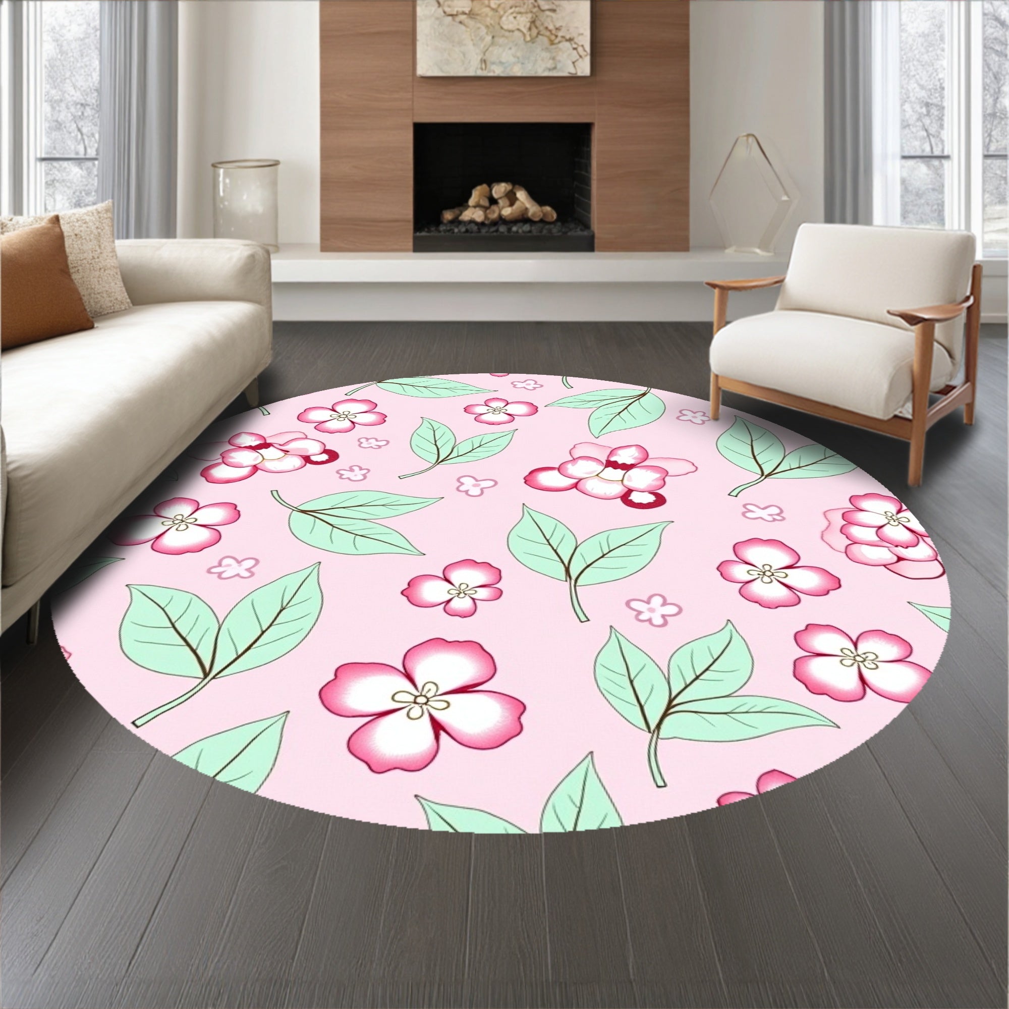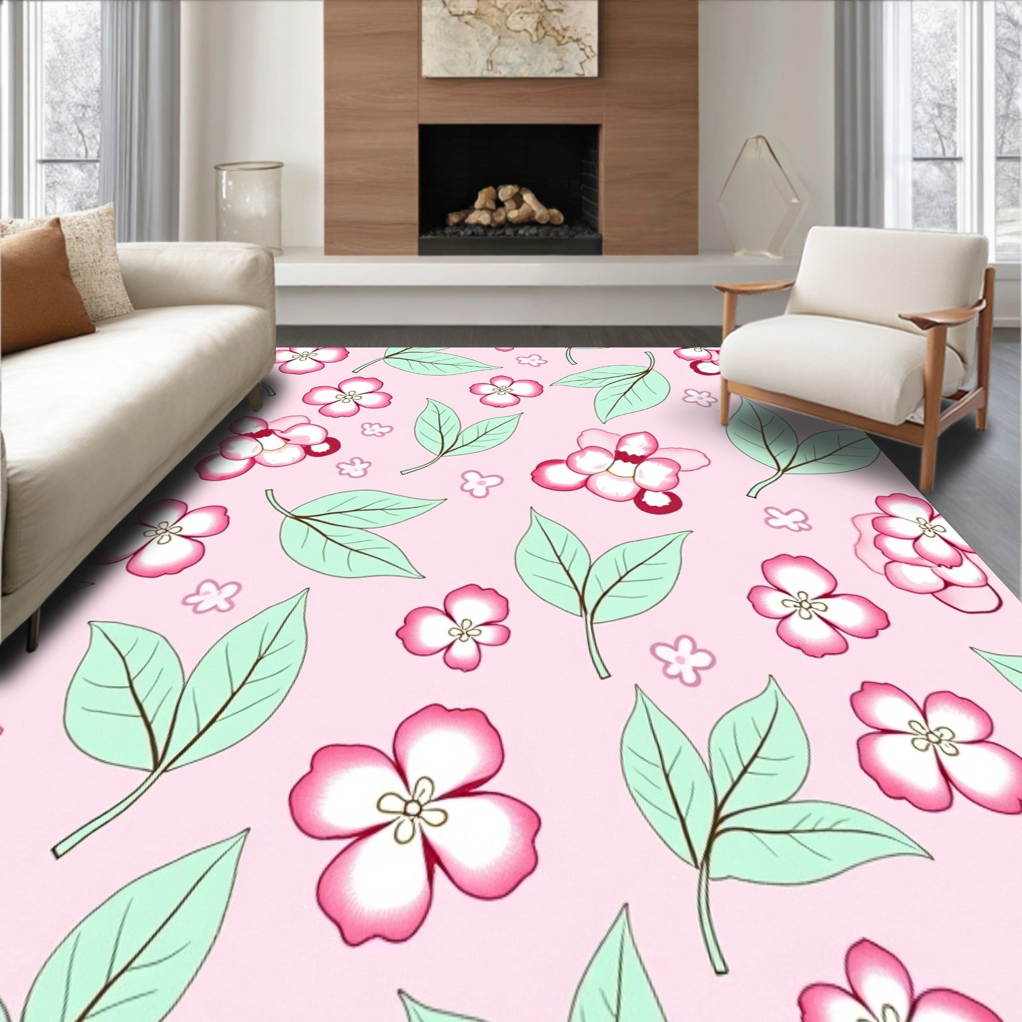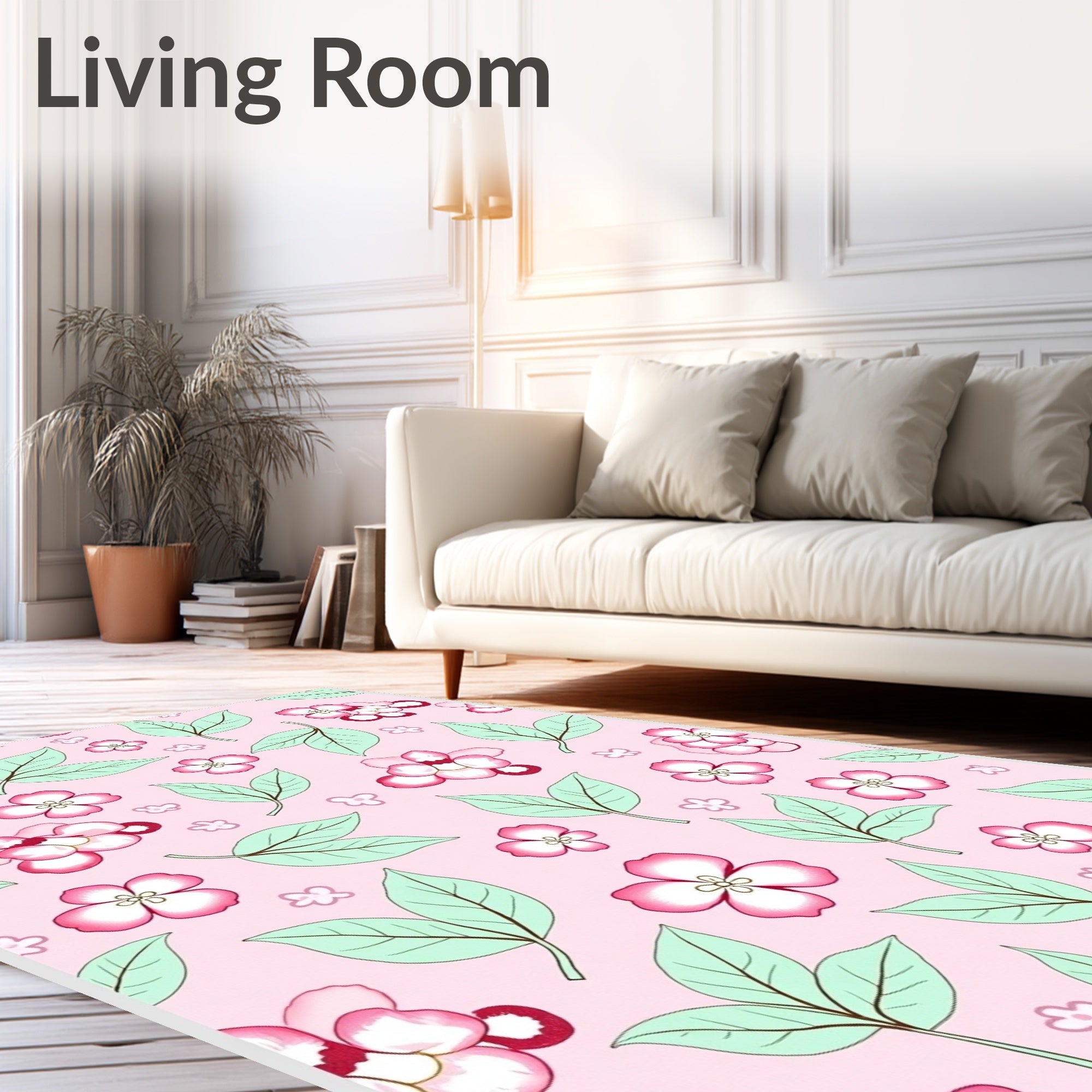 Ultra Soft Area Rug, Non Slip, Stain Resistant, Washable Area Rugs for Living Room, Bedroom, Blooming Orchard Pathway Semi Circle Entry with Nature Inspired Art(Pink) Overview: