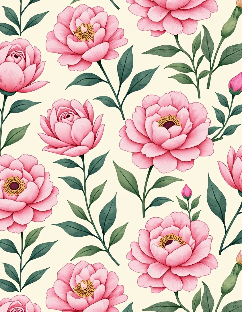 Blooming Peony Garden Botanical Floral Motif Accent(Pink)