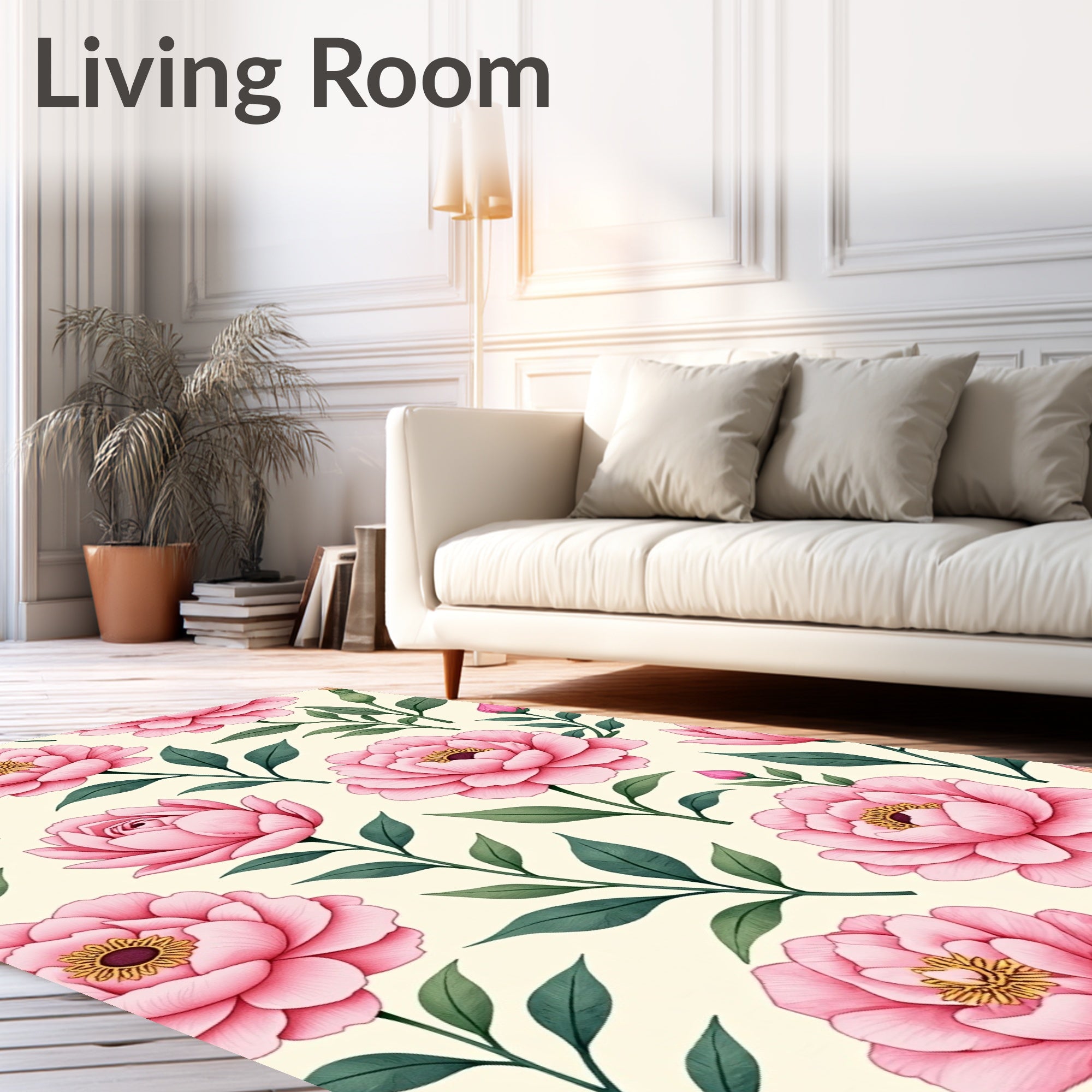 Flatwoven High Traffic Area Rug, Blooming Peony Garden Botanical Floral Motif Accent, Non Slip, Stain Resistant, Washable Area Rugs for Living Room, Bedroom (Pink) Overview: