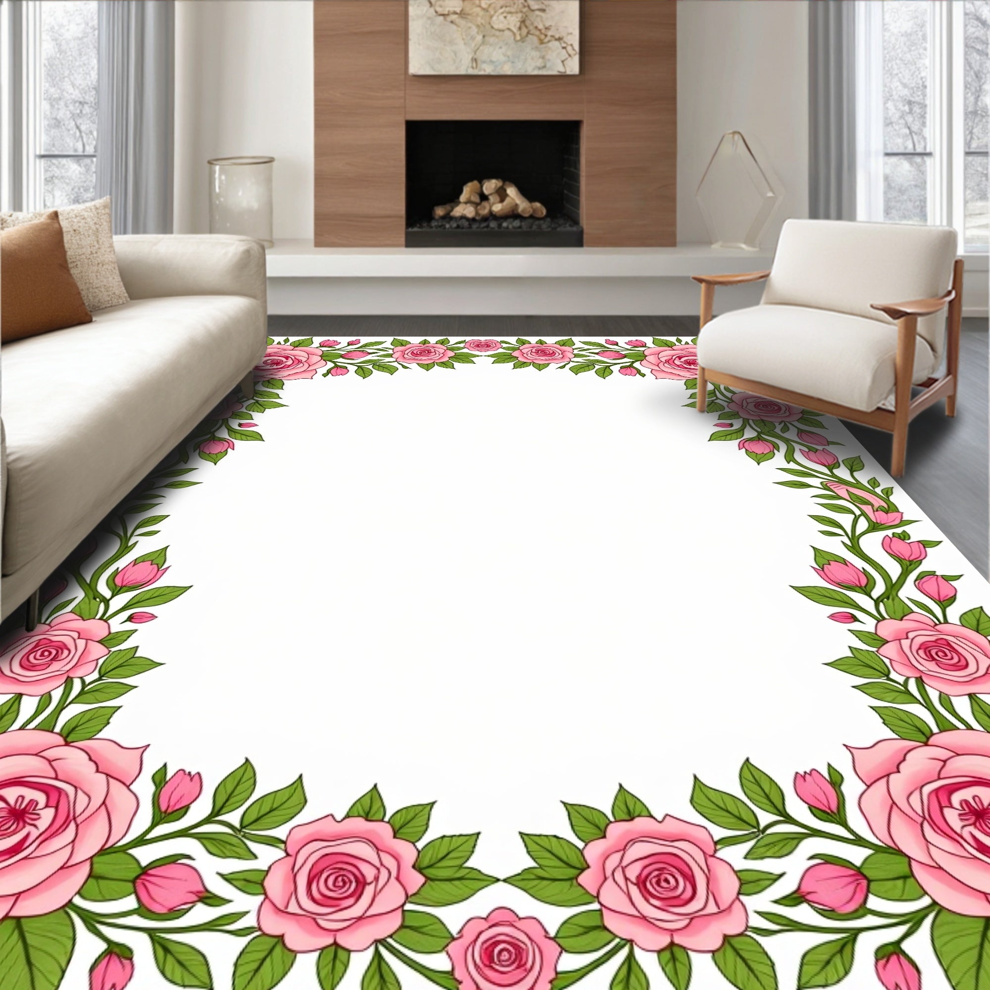 Flatwoven High Traffic Area Rug, Blooming Rose Garden Tapestry With Elegant Floral Arrangement, Non Slip, Stain Resistant, Washable Area Rugs for Living Room, Bedroom (Pink) Overview: