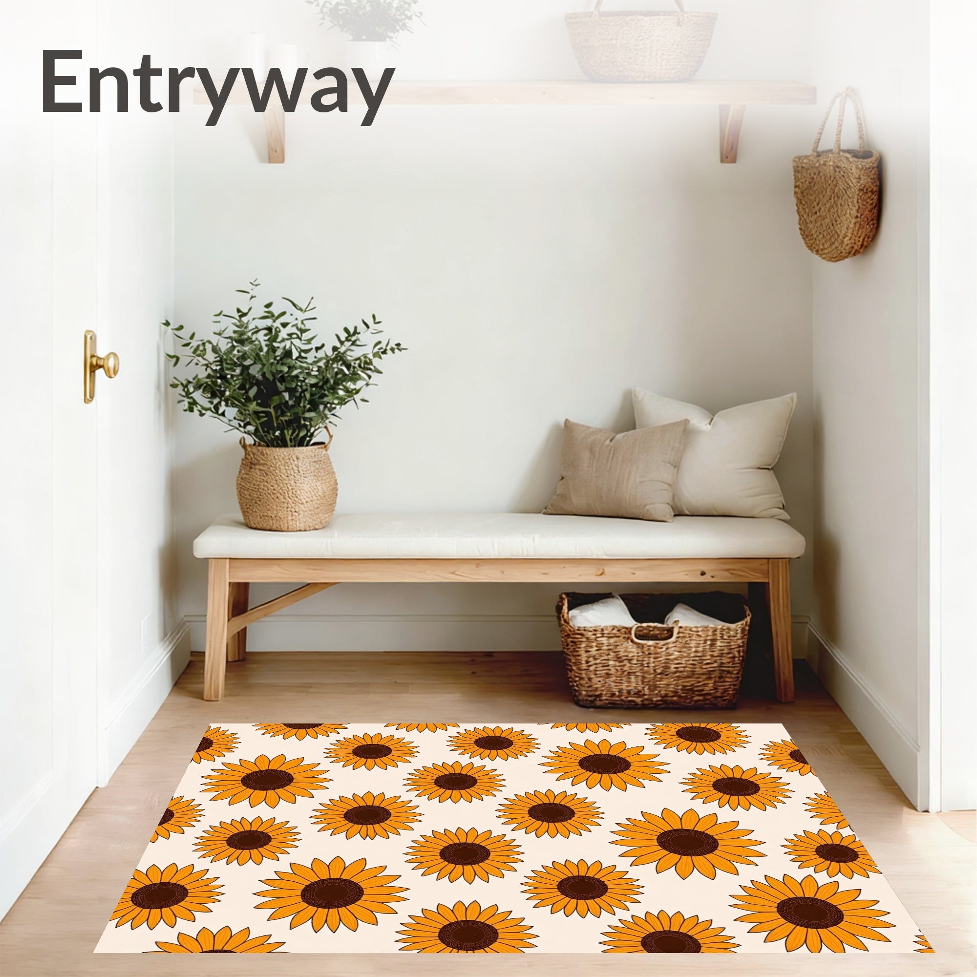 Ultra Soft Area Rug, Non Slip, Stain Resistant, Washable Area Rugs for Living Room, Bedroom, Blooming Sunflower Field Area with Vibrant Petals Design(Orange) Overview: