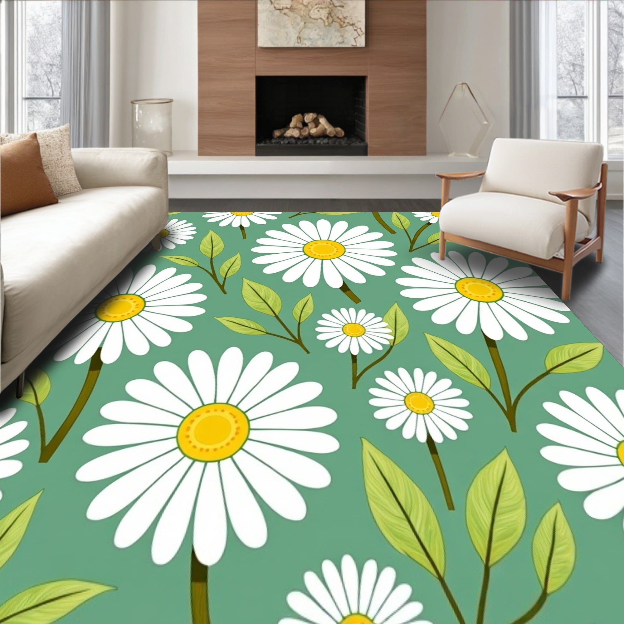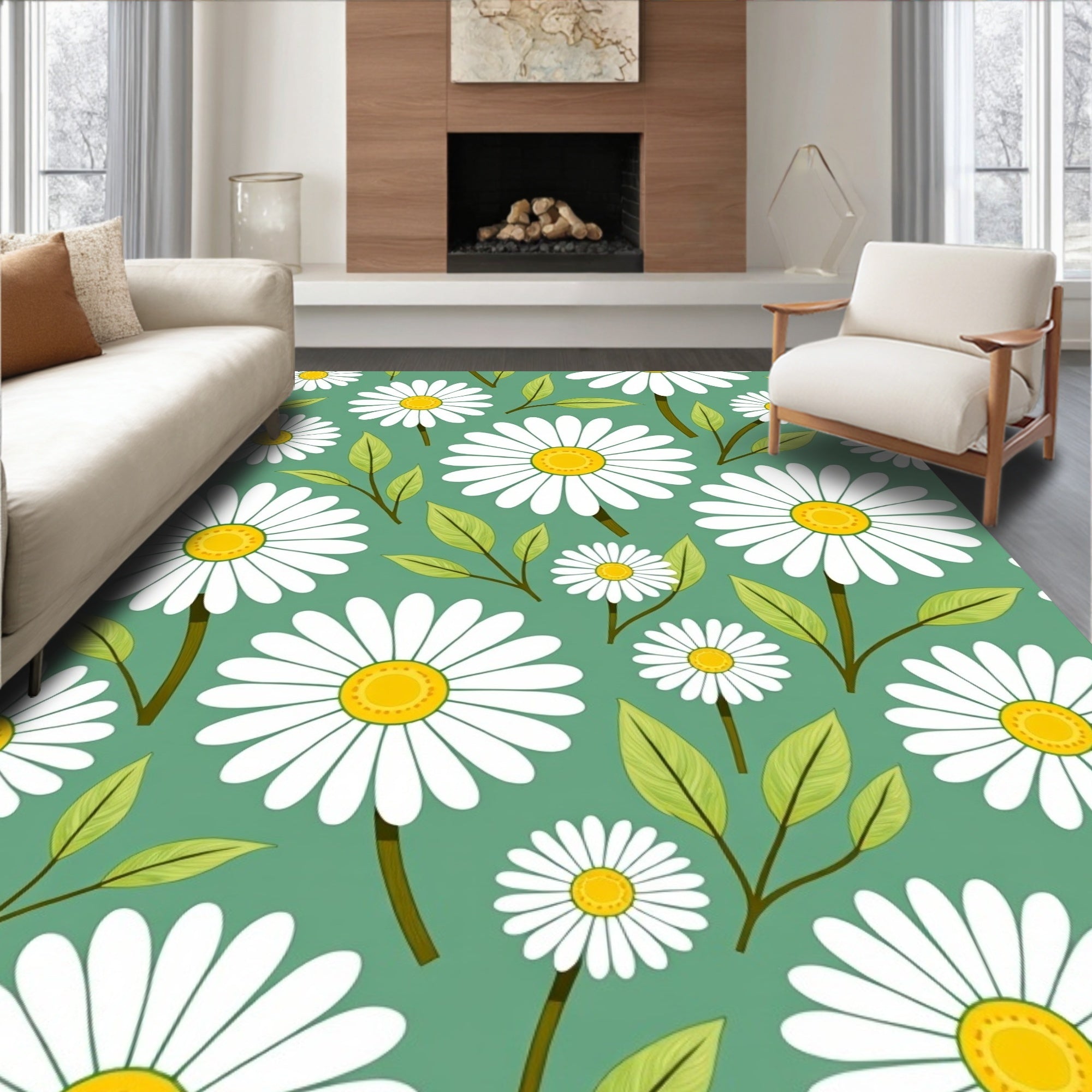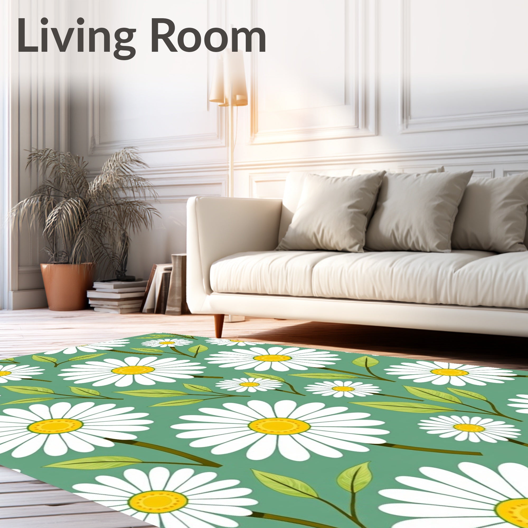 Ultra Soft Area Rug, Non Slip, Stain Resistant, Washable Area Rugs for Living Room, Bedroom, Blooming Wildflower Botanical Print Accent(White) Overview:
