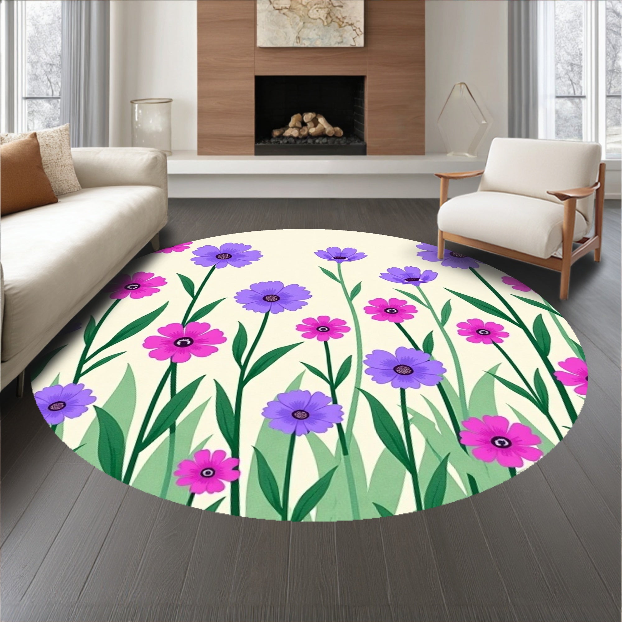 Ultra Soft Area Rug, Non Slip, Stain Resistant, Washable Area Rugs for Living Room, Bedroom, Blossom Field Welcoming Arch Doorway Floral Botanical Entrance(Purple) Overview: