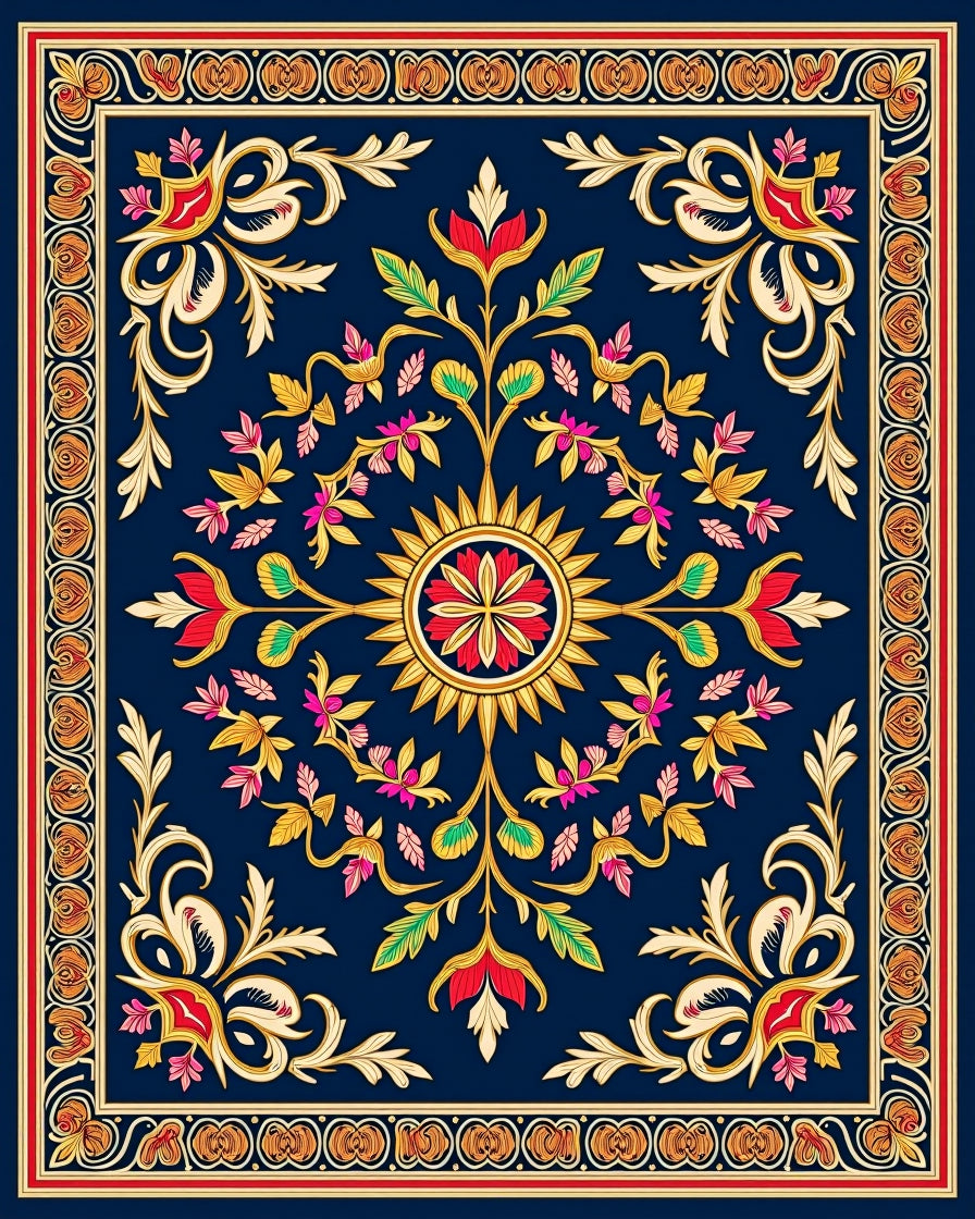 Blossoming Medallion Array with Flourishing Botanical Filigree Motifs(Navy)