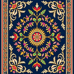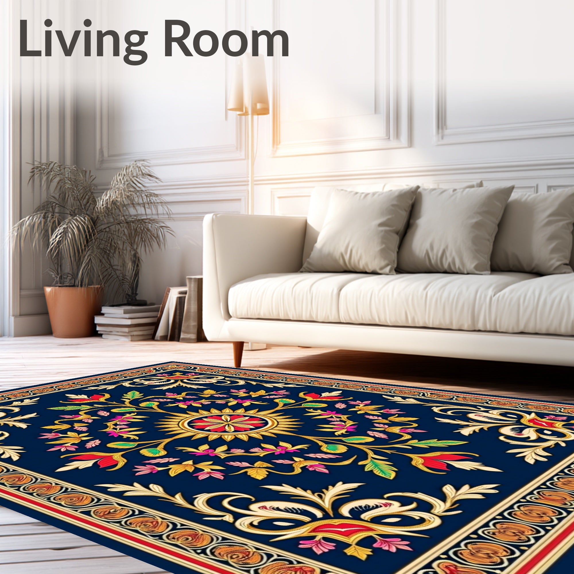 Ultra Soft Area Rug, Non Slip, Stain Resistant, Washable Area Rugs for Living Room, Bedroom, Blossoming Medallion Array with Flourishing Botanical Filigree Motifs(Navy) Overview: