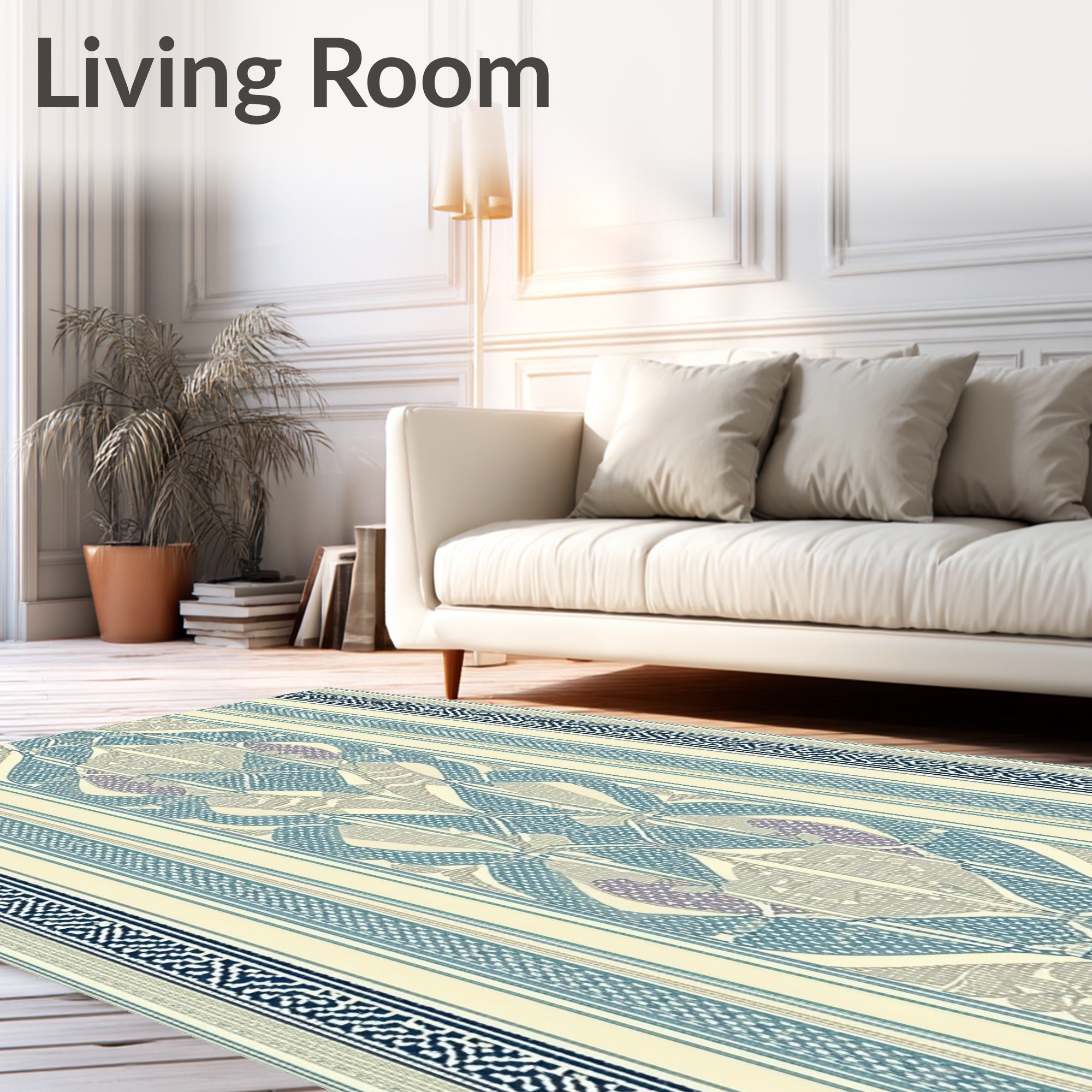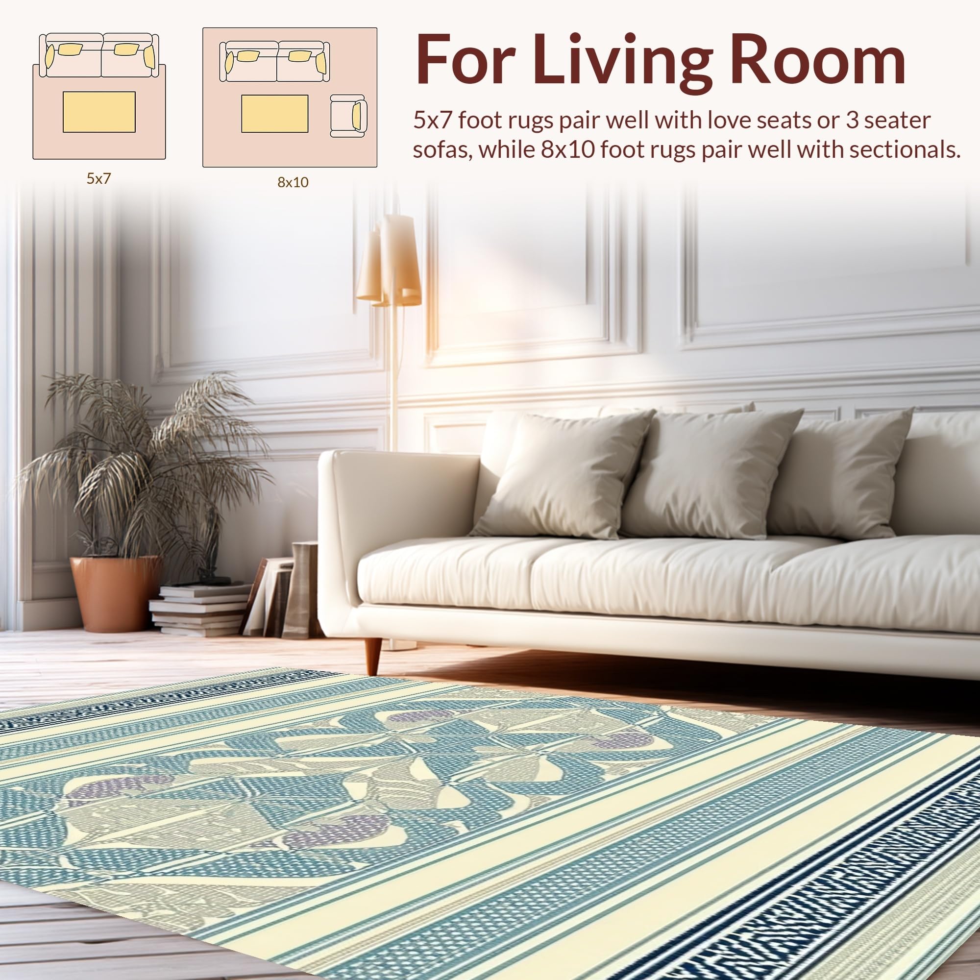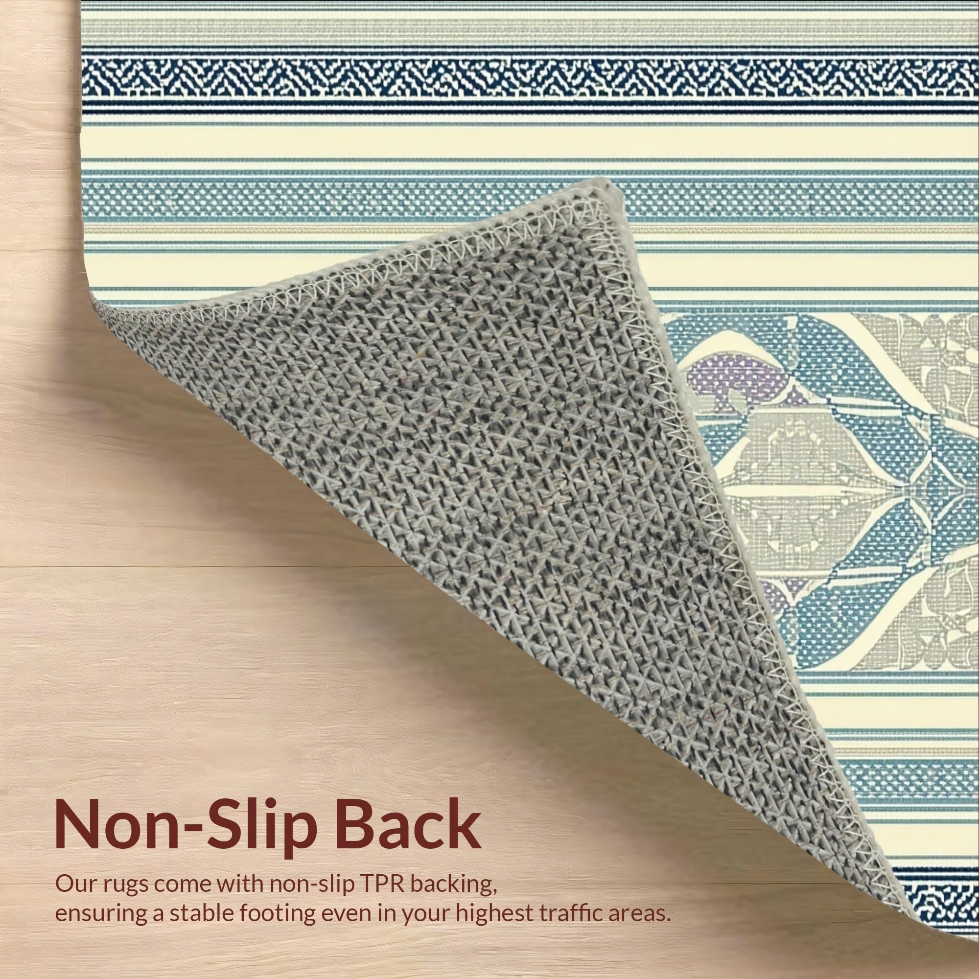 Ultra Soft Area Rug, Non Slip, Stain Resistant, Washable Area Rugs for Living Room, Bedroom, Blue Beige Country Charm Area Interlaced Oval Rustic Classic(Beige) Overview:
