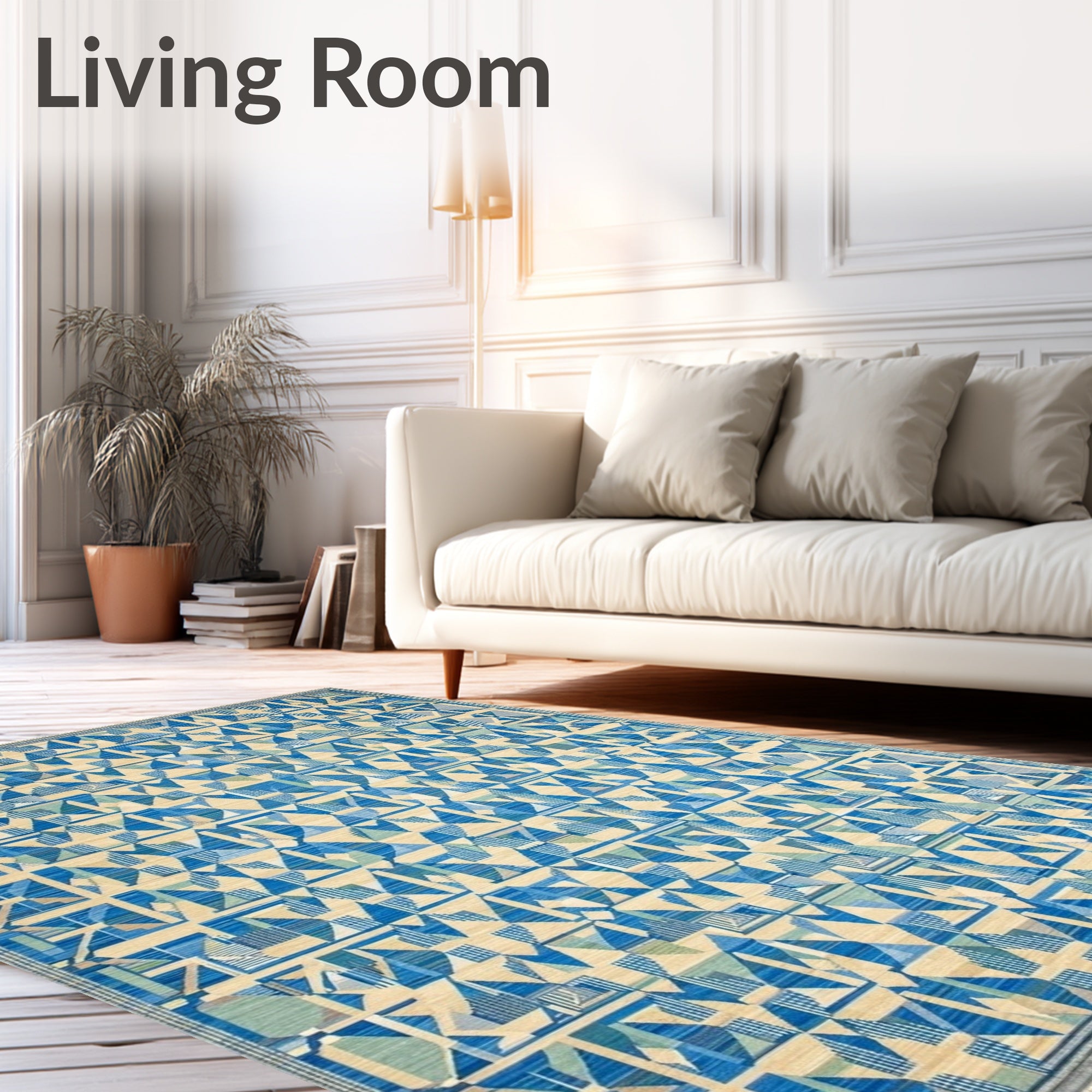 Ultra Soft Area Rug, Non Slip, Stain Resistant, Washable Area Rugs for Living Room, Bedroom, Blue & Beige Geometric Non Shedding(Blue) Overview: