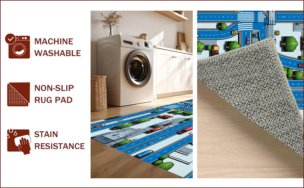 Ultra Soft Area Rug, Non Slip, Stain Resistant, Washable Area Rugs for Living Room, Bedroom, Blue City Map Non Slip Toddler Playroom Rug(Blue) Overview: