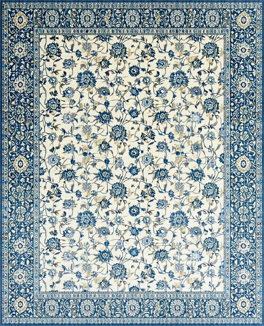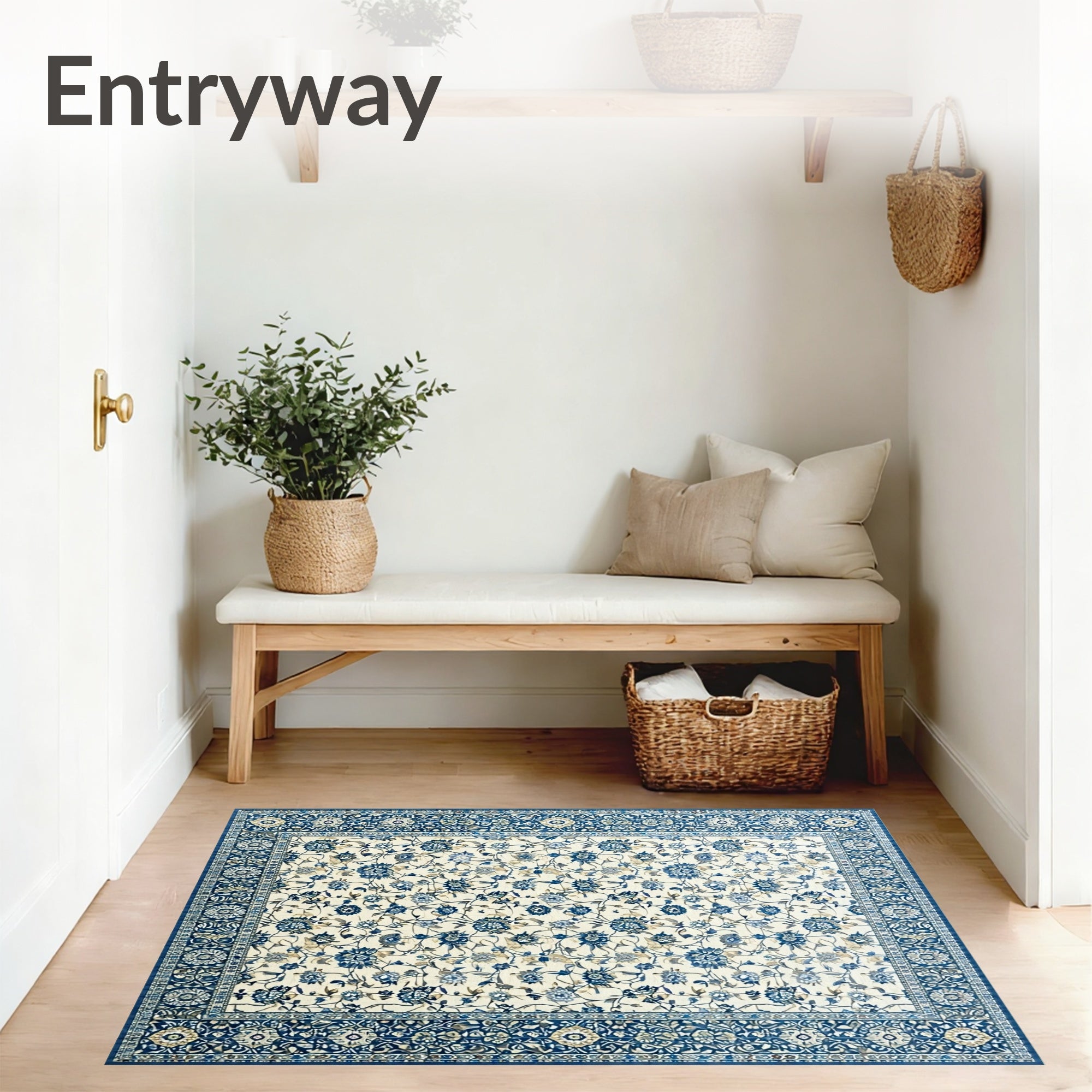 Ultra Soft Area Rug, Non Slip, Stain Resistant, Washable Area Rugs for Living Room, Bedroom, Blue Grey Beige Floral Design Area Modern Eclectic Style(White) Overview: