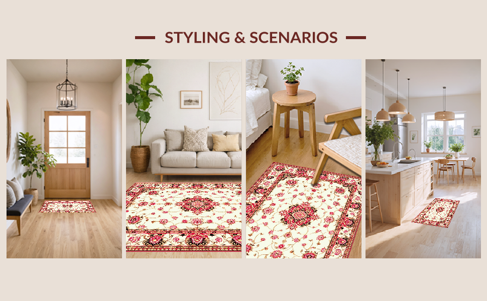 Ultra Soft Area Rug, Non Slip, Stain Resistant, Washable Area Rugs for Living Room, Bedroom, Blue Modern Antique Composition(Beige) Overview: