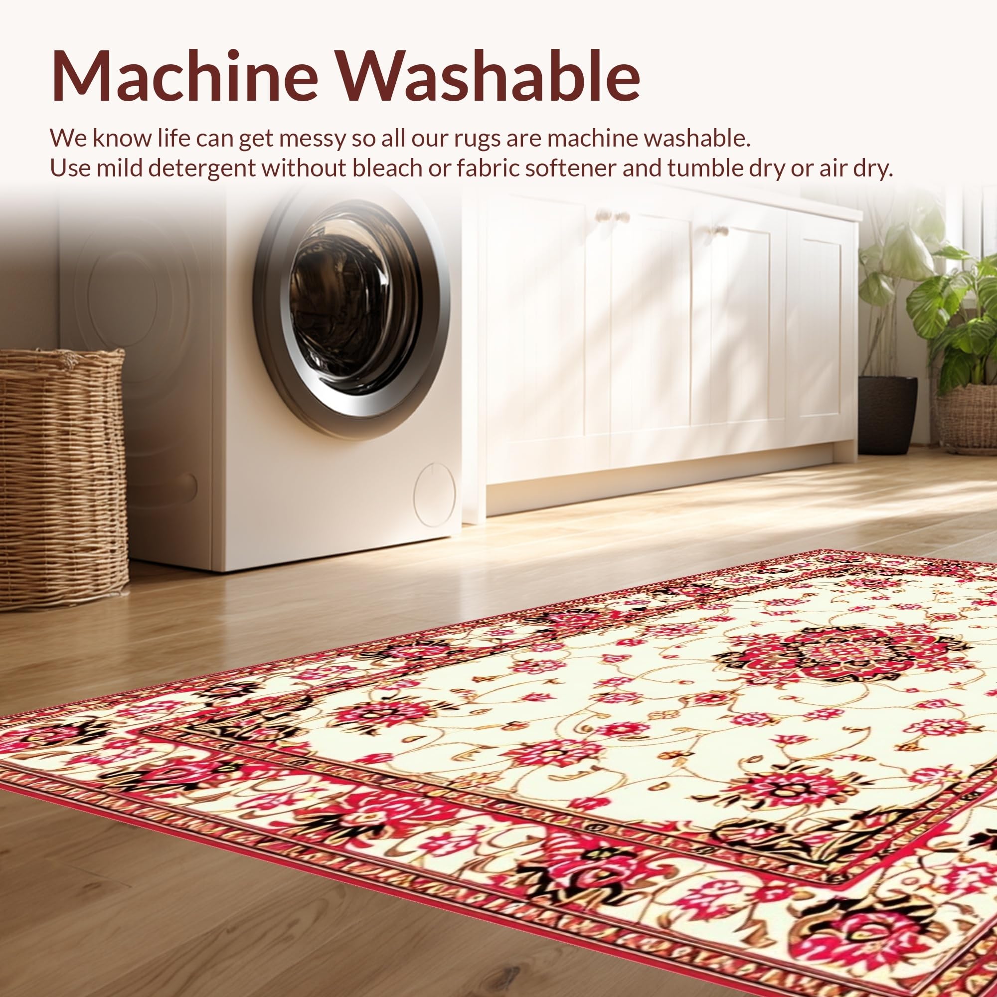- Machine Washable: Our rugs can be easily thrown in the wash machine.
