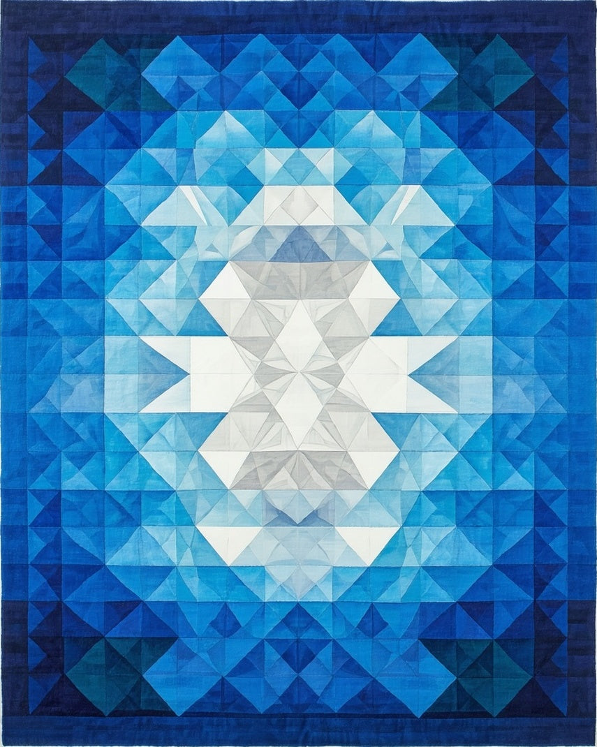 Blue Mosaic Carpet Featuring Intricate Triangular Tessellations(Blue)