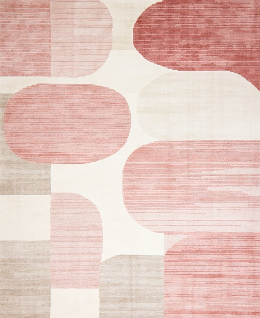 Blush and Cream Abstract with Modern Geometric Rose Accents(Beige)