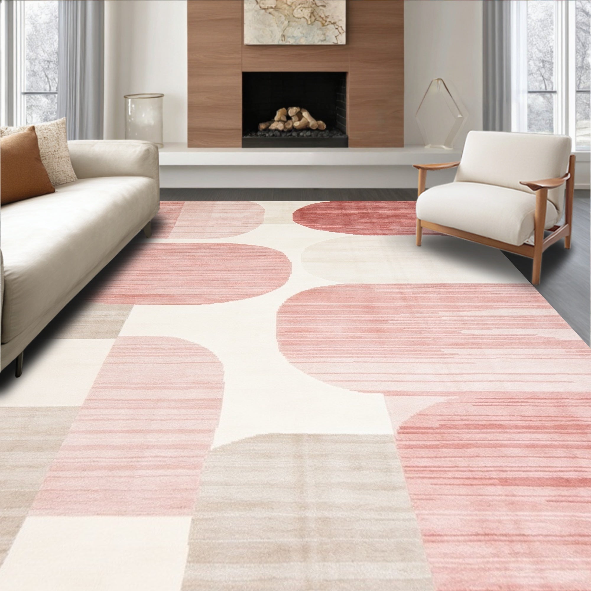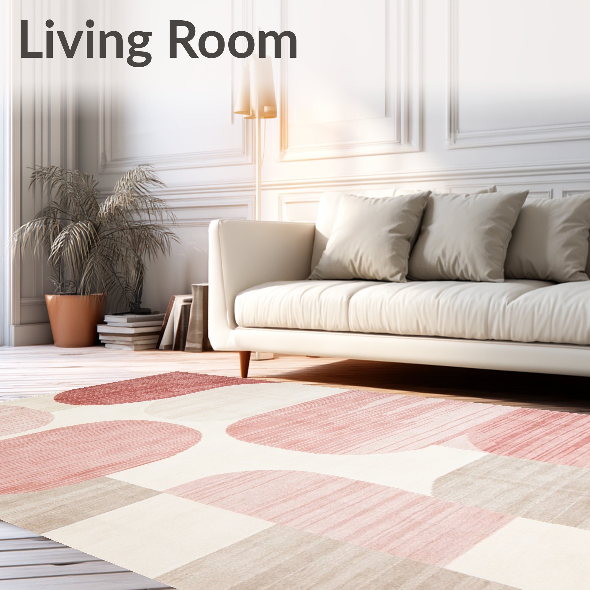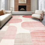 Ultra Soft Area Rug, Non Slip, Stain Resistant, Washable Area Rugs for Living Room, Bedroom, Blush and Cream Abstract with Modern Geometric Rose Accents(Beige) Overview: