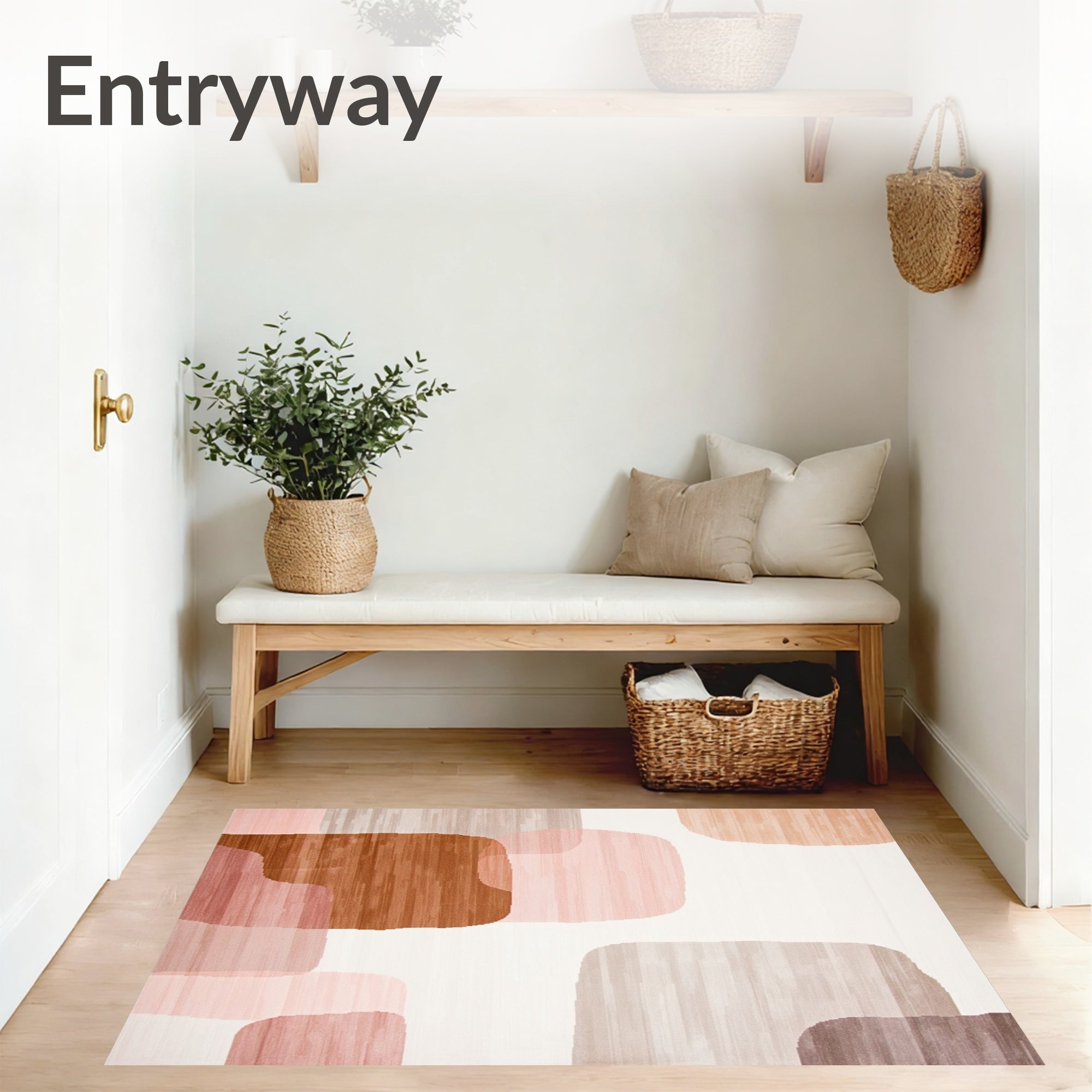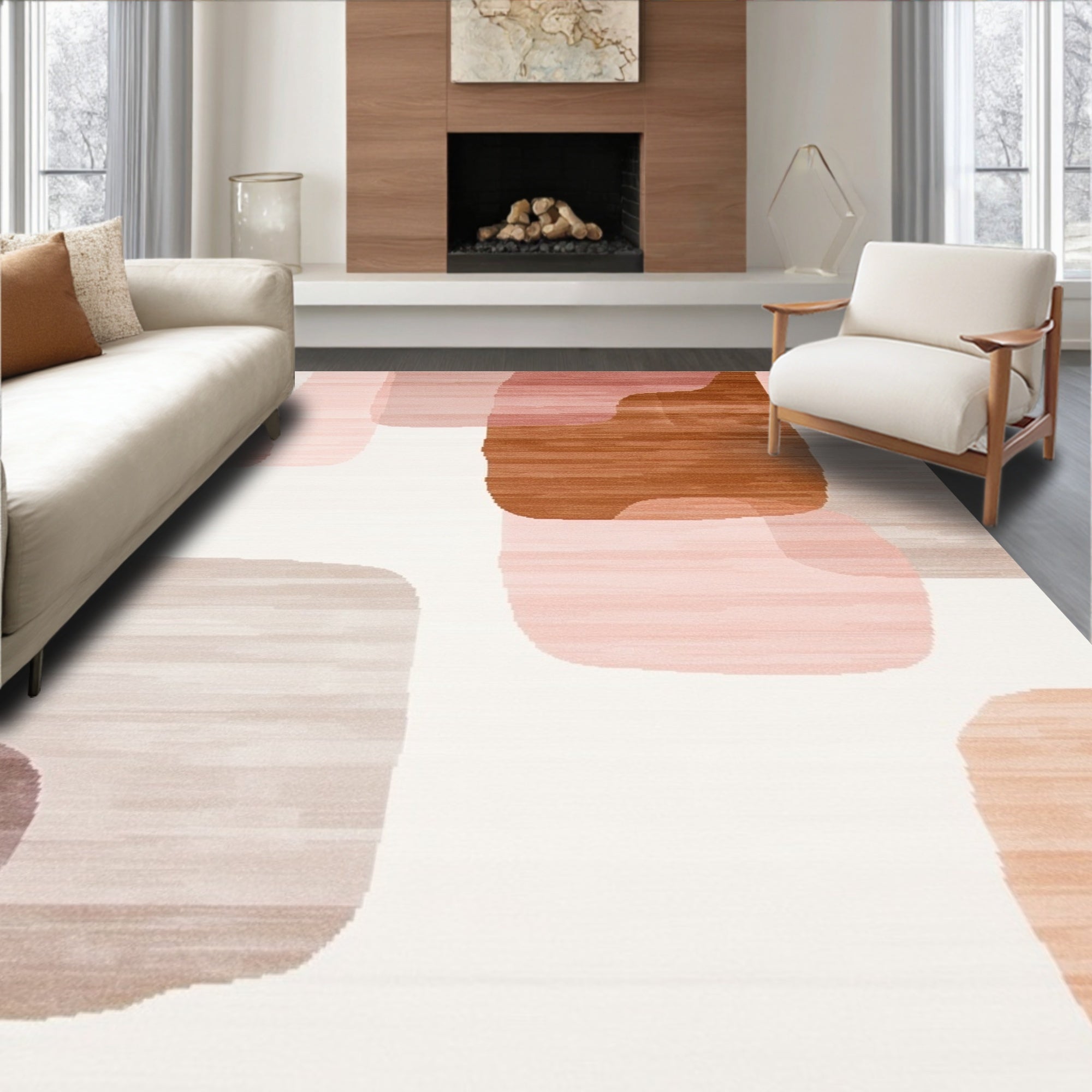 Ultra Soft Area Rug, Non Slip, Stain Resistant, Washable Area Rugs for Living Room, Bedroom, Blush and Taupe Modern Abstract With Irregular Brushstroke Motifs(Beige) Overview: