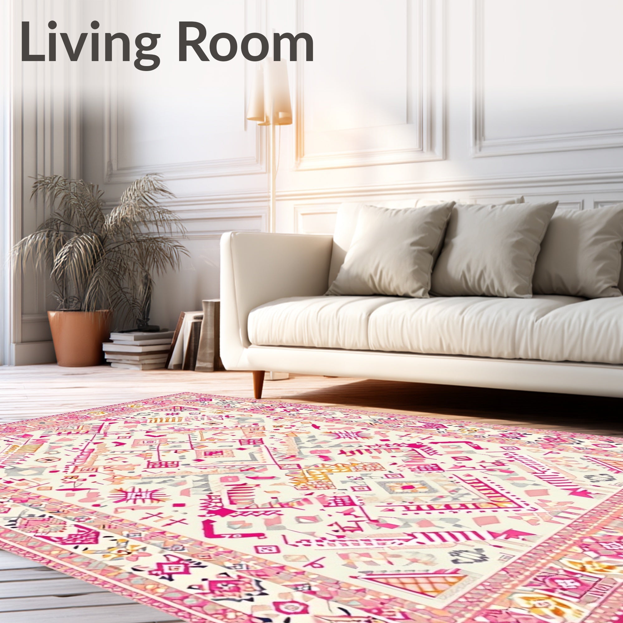 Ultra Soft Area Rug, Non Slip, Stain Resistant, Washable Area Rugs for Living Room, Bedroom, Bohemian Trellis(White) Overview: