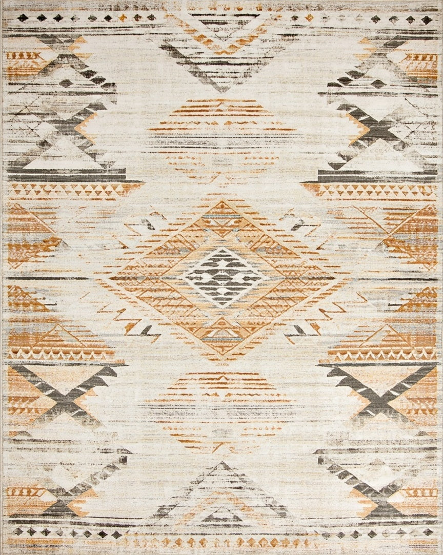 Boho Accent Non Slip Backing Distressed Geometric(Beige)
