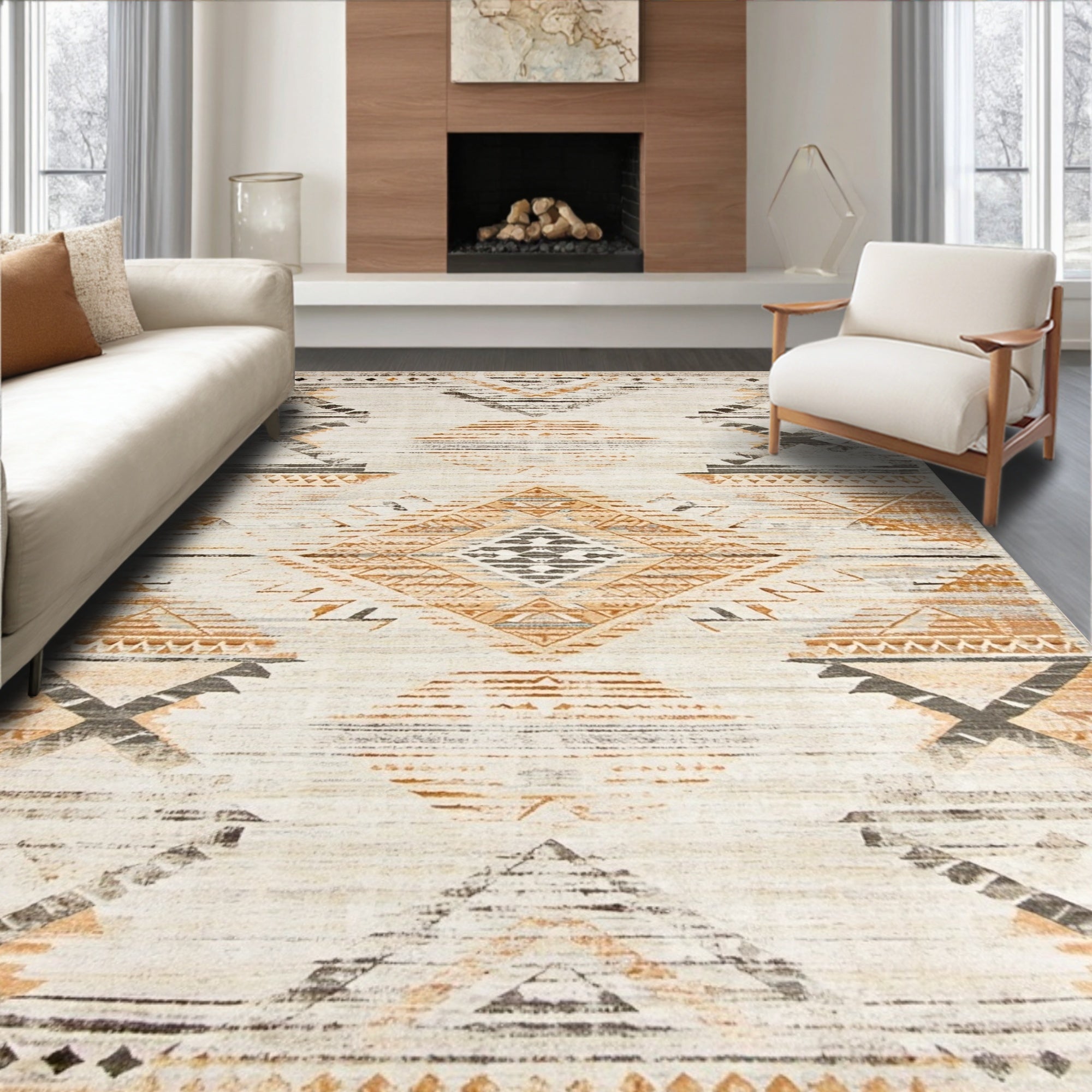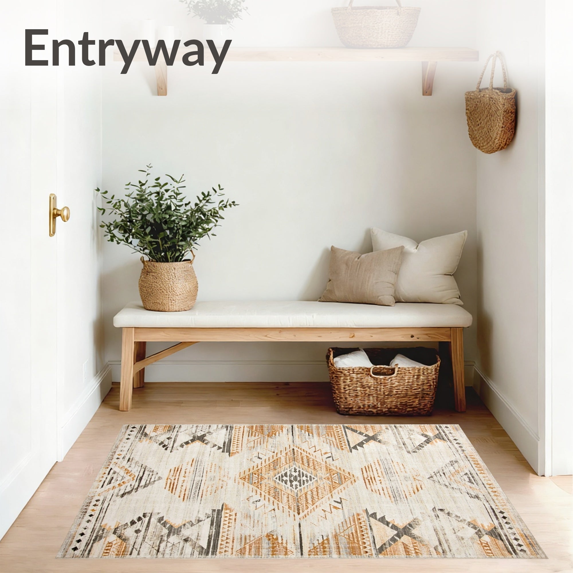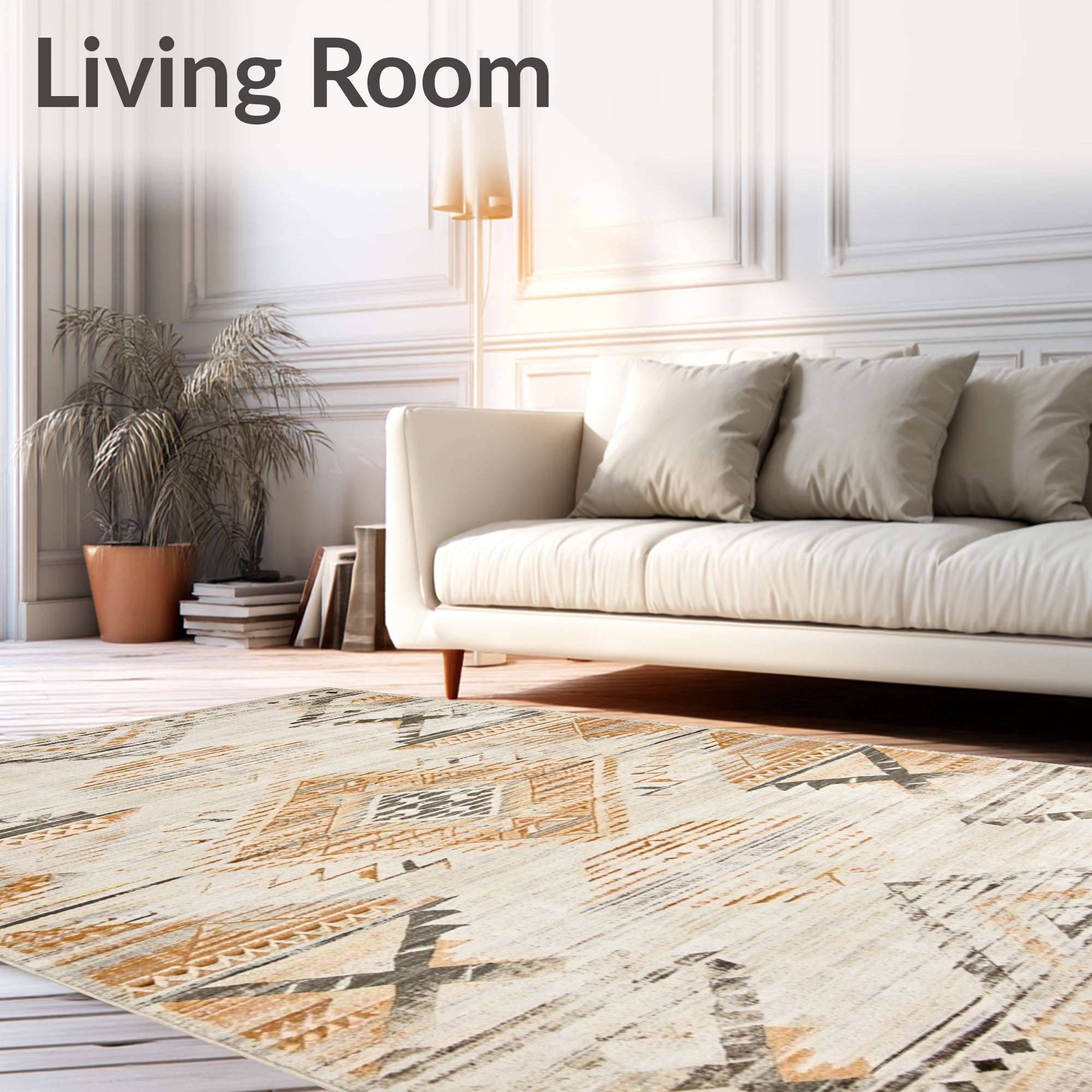 Ultra Soft Area Rug, Non Slip, Stain Resistant, Washable Area Rugs for Living Room, Bedroom, Boho Accent Non Slip Backing Distressed Geometric(Beige) Overview: