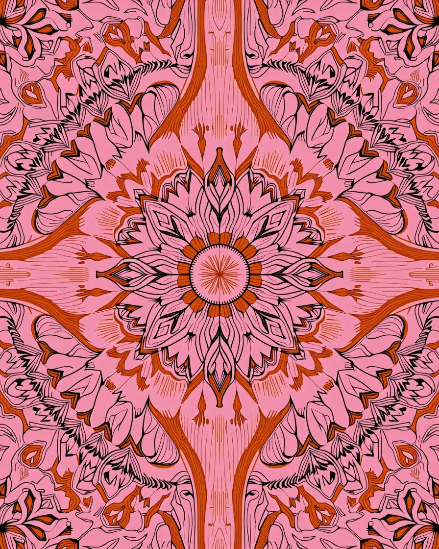 Boho Autumn Dreamscape with Interlocking Sunburst and Foliage(Pink)