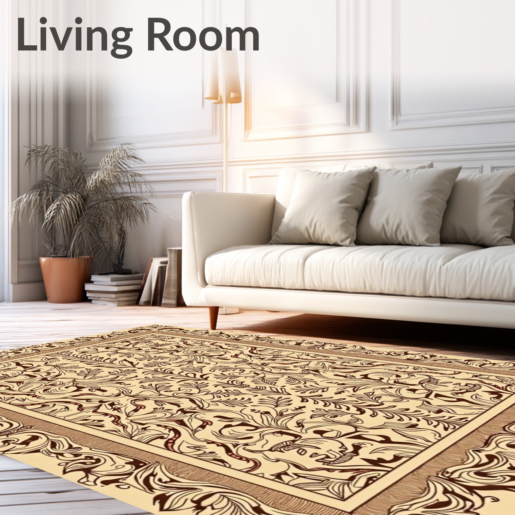 Ultra Soft Area Rug, Non Slip, Stain Resistant, Washable Area Rugs for Living Room, Bedroom, Boho Autumn Vinework with Interlocking Foliage and Whimsical Fern Detailing(Beige) Overview: