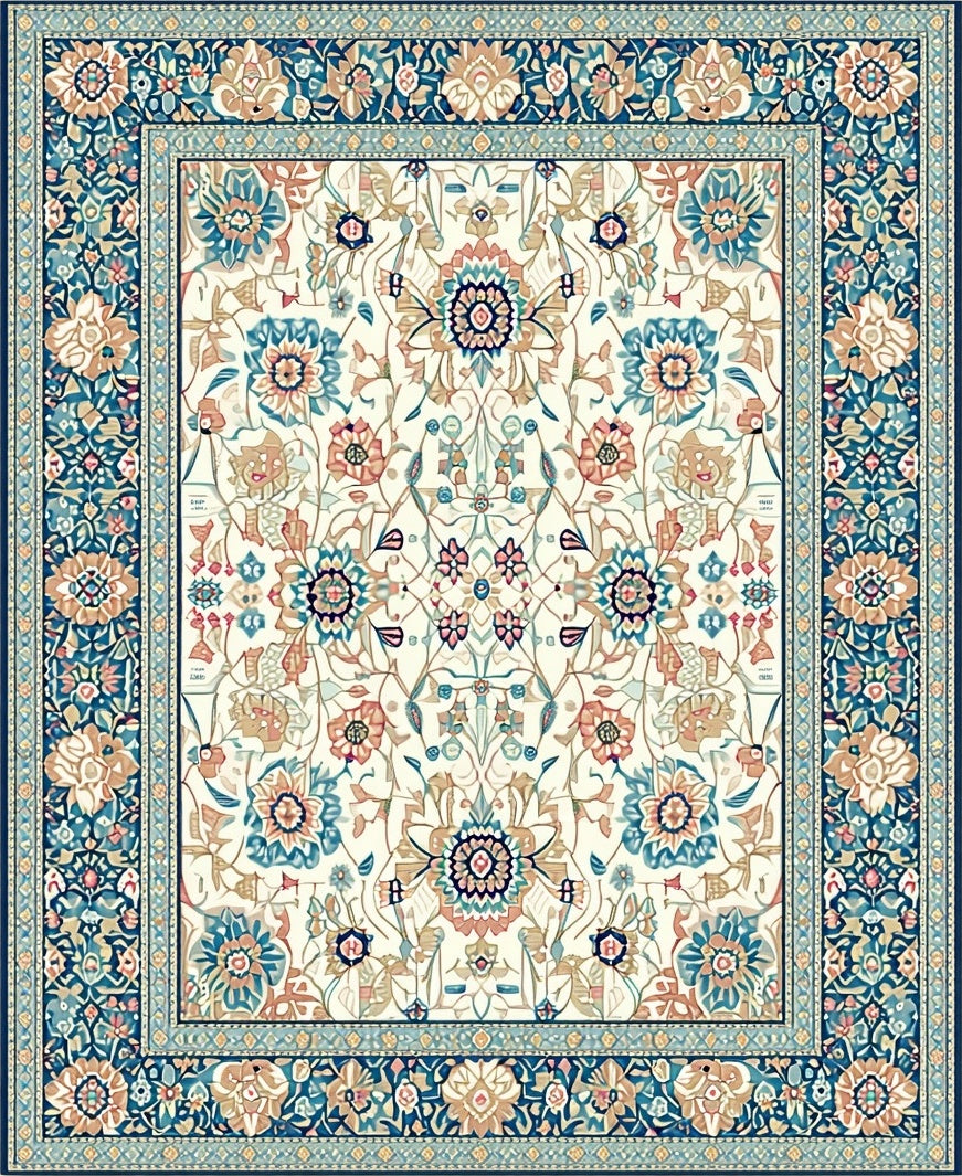 Ultra Soft Area Rug, Non Slip, Stain Resistant, Washable Area Rugs for Living Room, Bedroom, Boho Beige and Azure Intricate Floral Motifs(Beige) Overview: