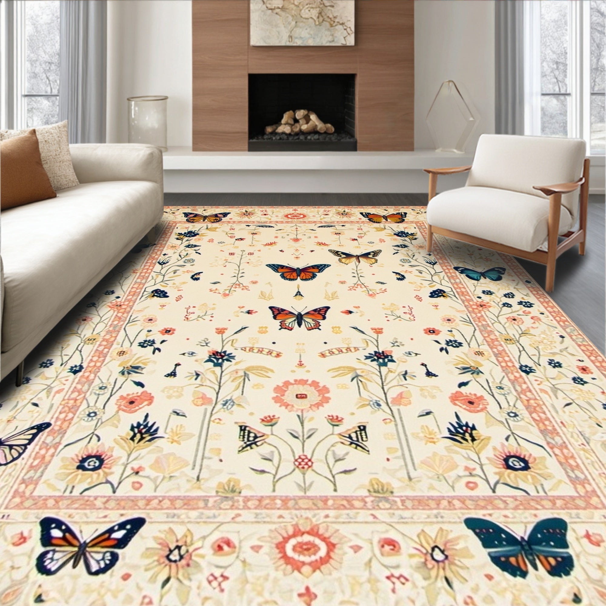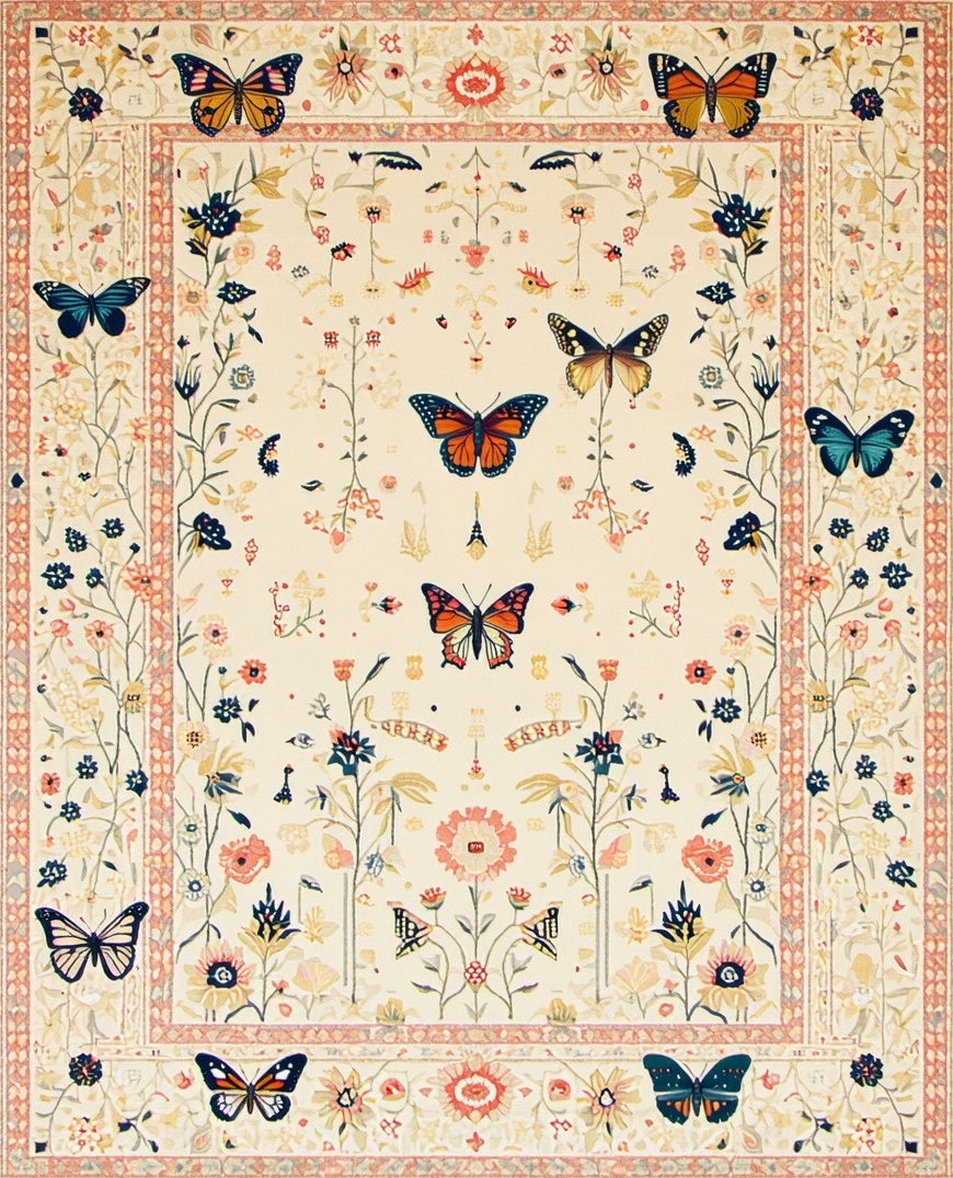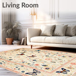 Ultra Soft Area Rug, Non Slip, Stain Resistant, Washable Area Rugs for Living Room, Bedroom, Boho Beige Moth and Butterfly Floral for(Ivory) Overview:
