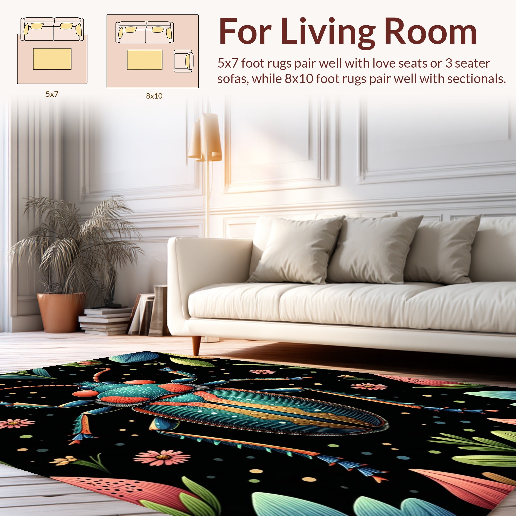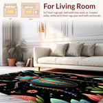 Flatwoven High Traffic Area Rug, Boho Black Botanical Non Slip, Non Slip, Stain Resistant, Washable Area Rugs for Living Room, Bedroom (Black) Overview: