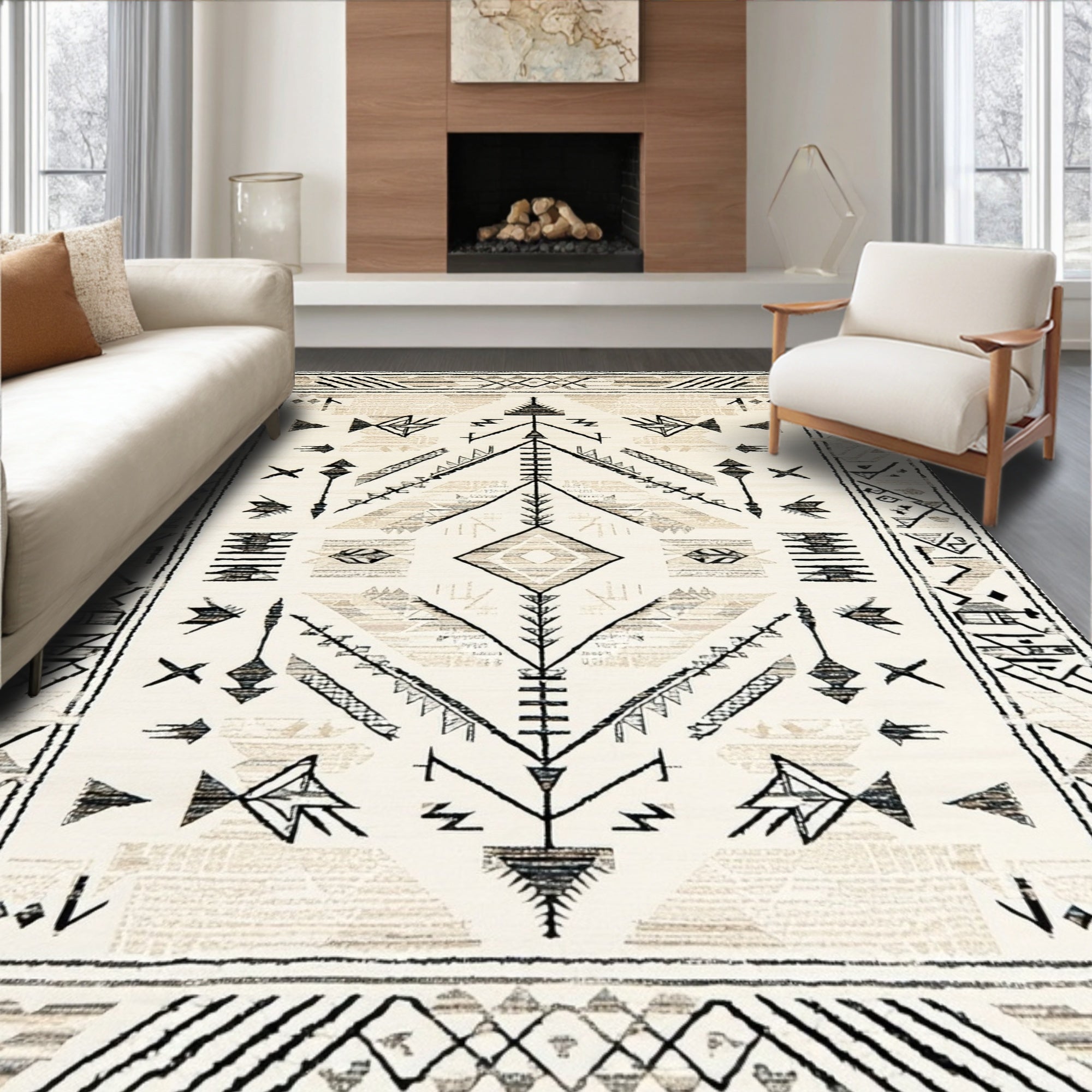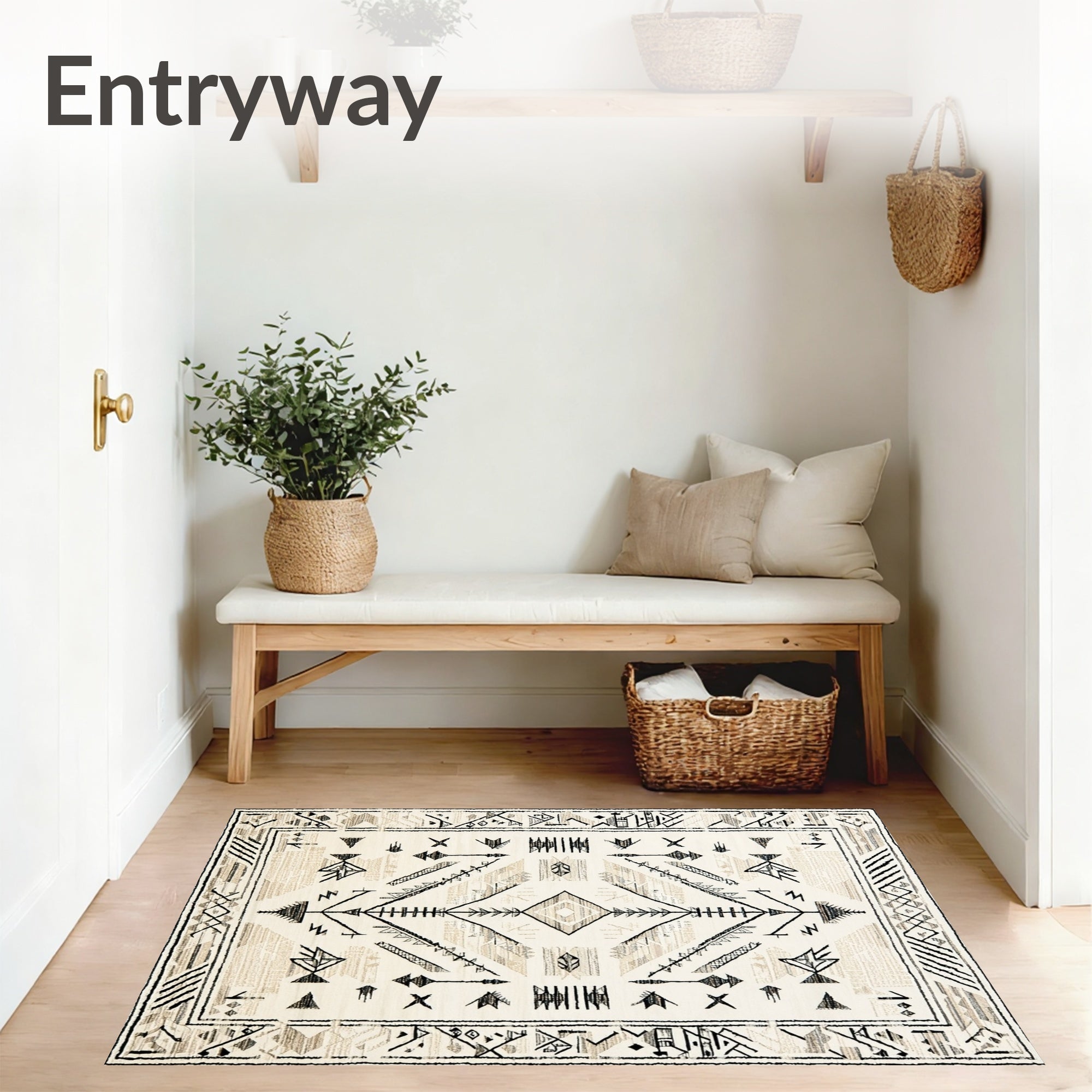 Ultra Soft Area Rug, Non Slip, Stain Resistant, Washable Area Rugs for Living Room, Bedroom, Boho Bliss Indoor/ Beige Runner Durable &(Beige) Overview: