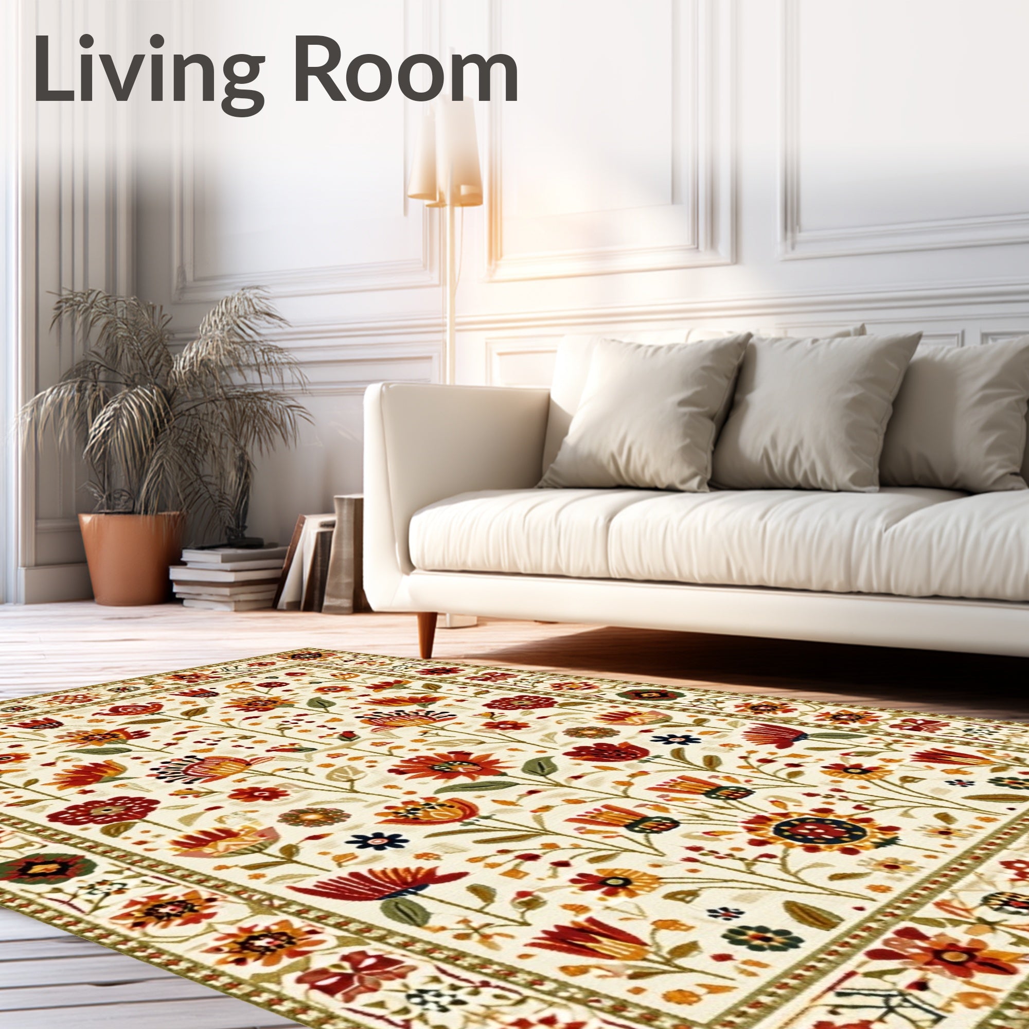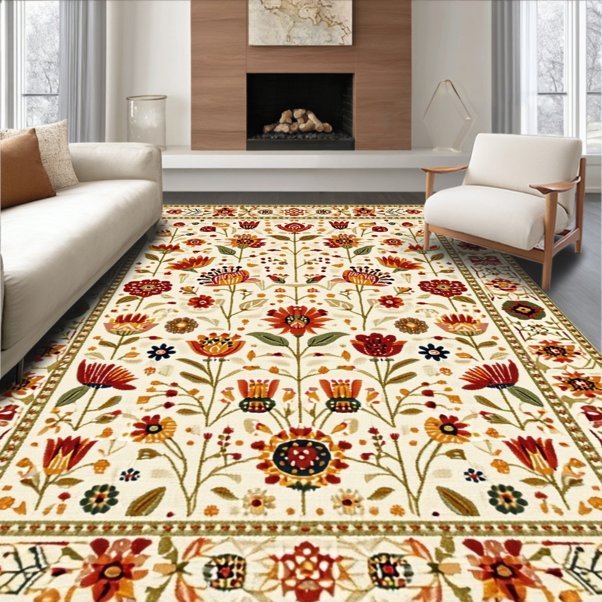 Ultra Soft Area Rug, Non Slip, Stain Resistant, Washable Area Rugs for Living Room, Bedroom, Boho Bloom Bathroom Non Slip Artistic Floral Bath(Beige) Overview: