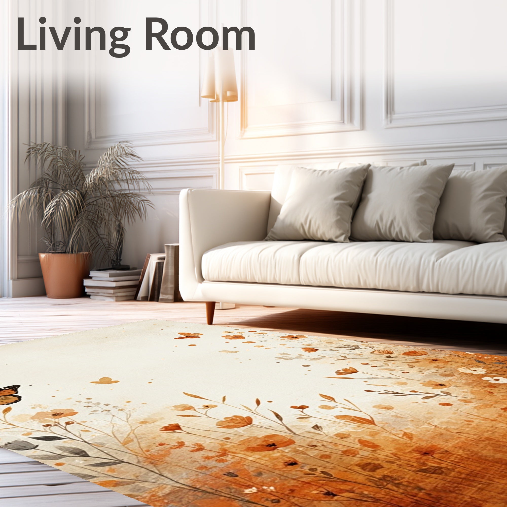 Ultra Soft Area Rug, Non Slip, Stain Resistant, Washable Area Rugs for Living Room, Bedroom, Boho Butterfly Meadow Abstract Insect Art Floor Covering for Home(Beige) Overview: