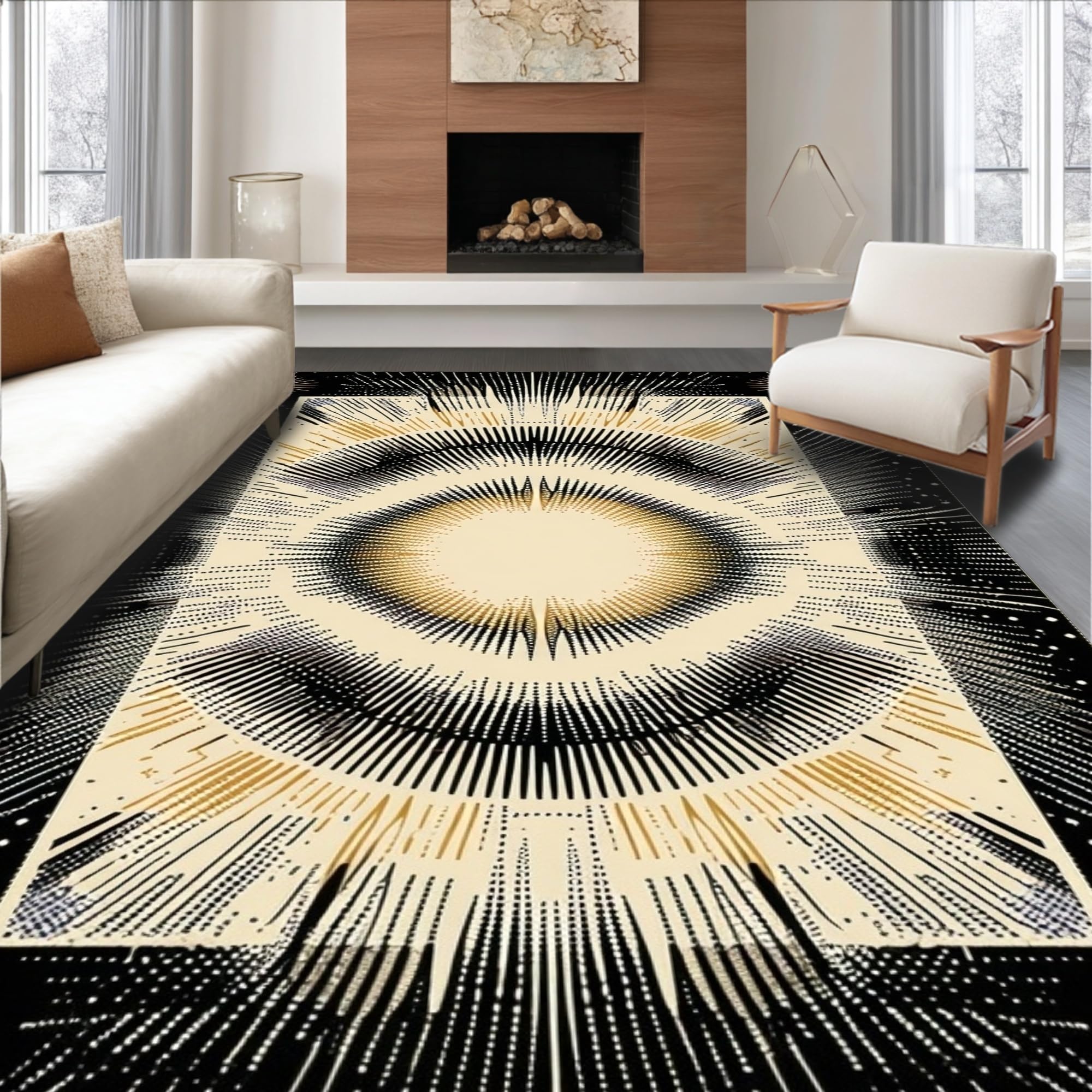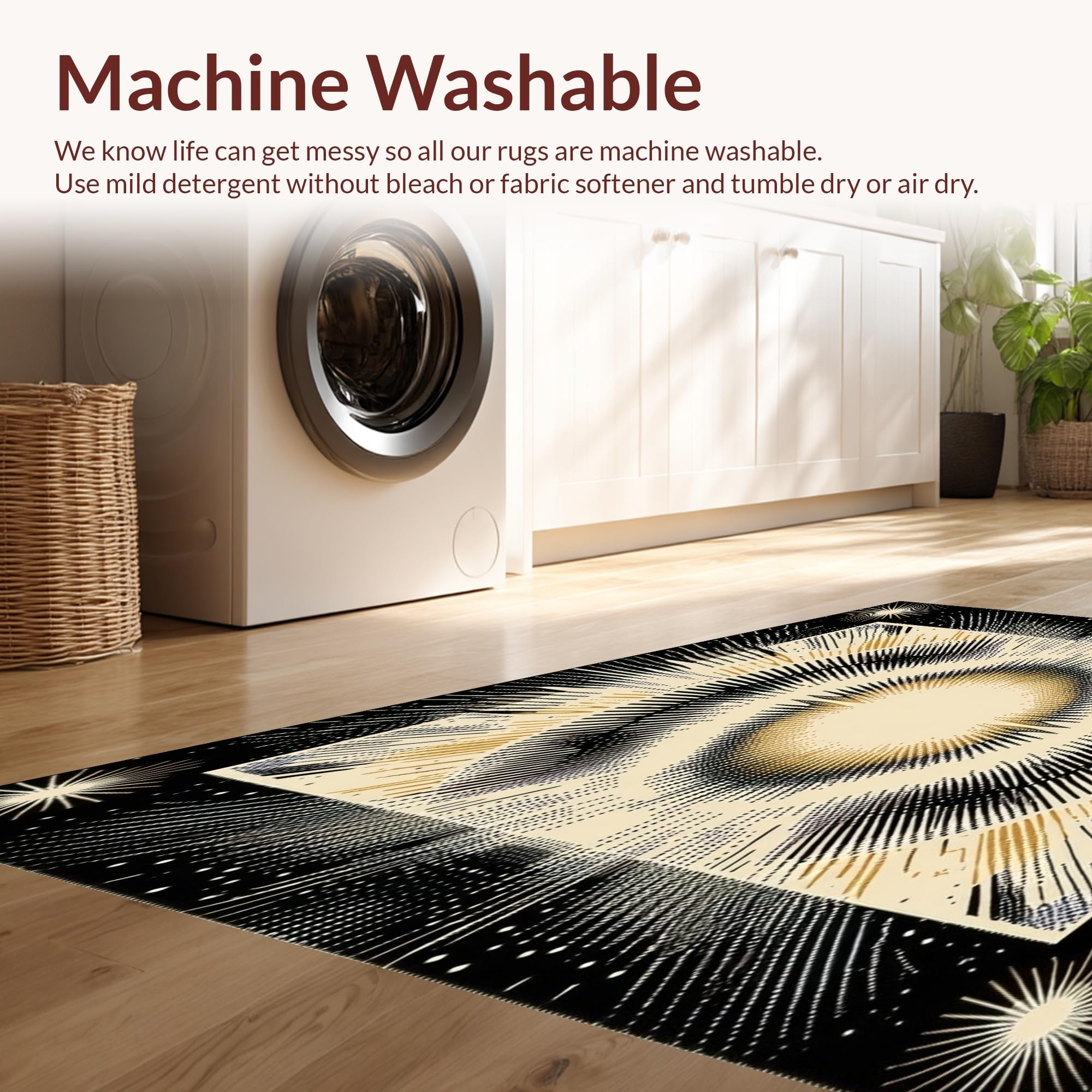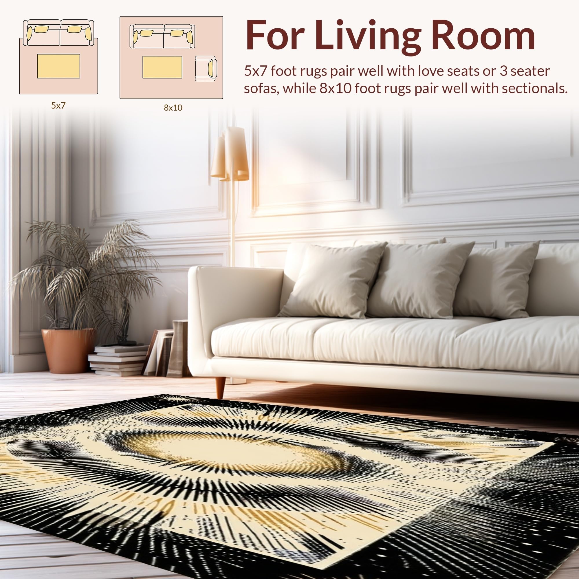 Ultra Soft Area Rug, Non Slip, Stain Resistant, Washable Area Rugs for Living Room, Bedroom, Boho Chic Accent Beige & Black Geometric Starburst(Beige) Overview: