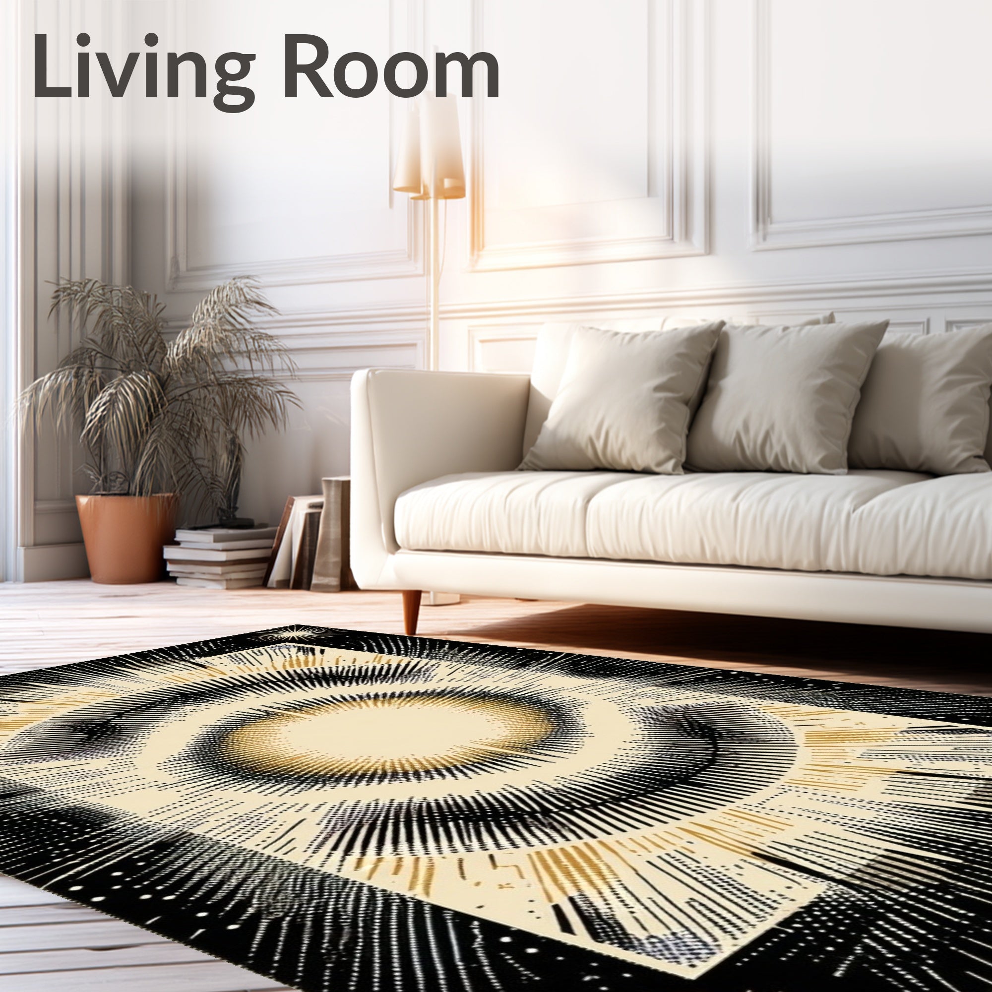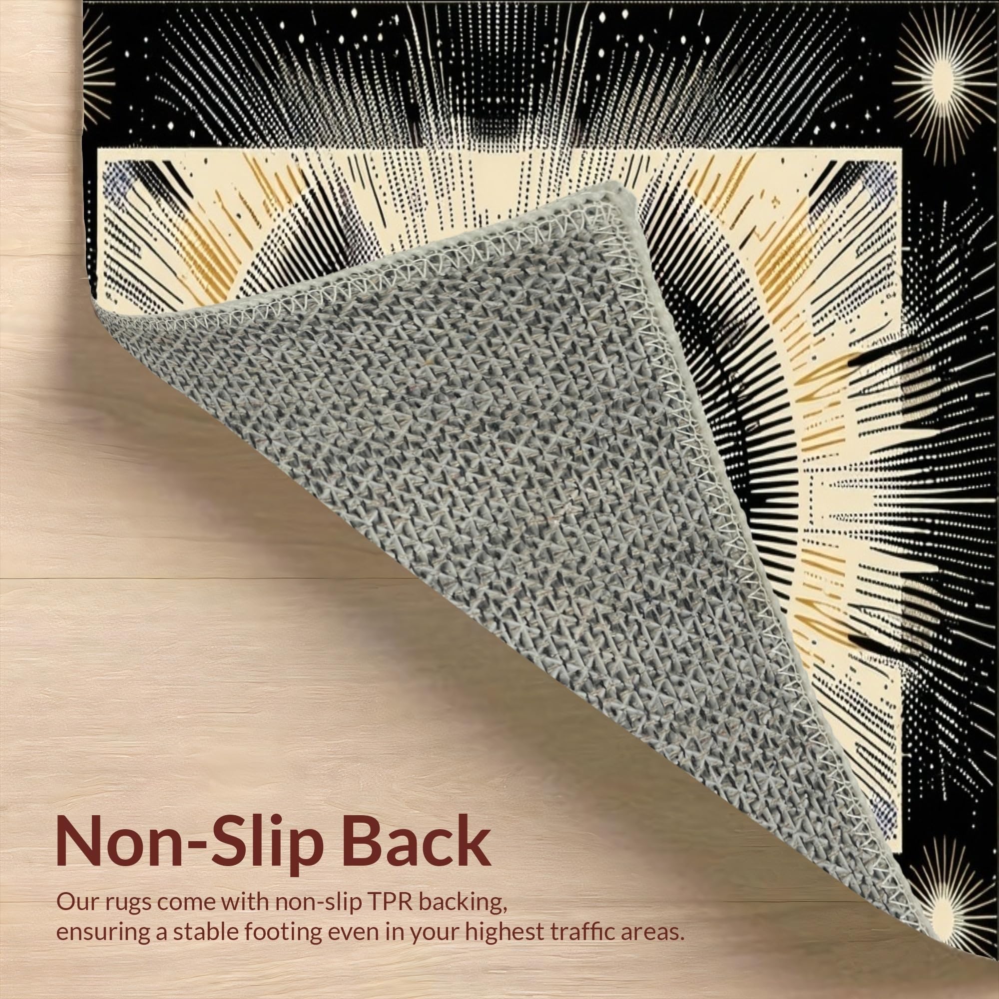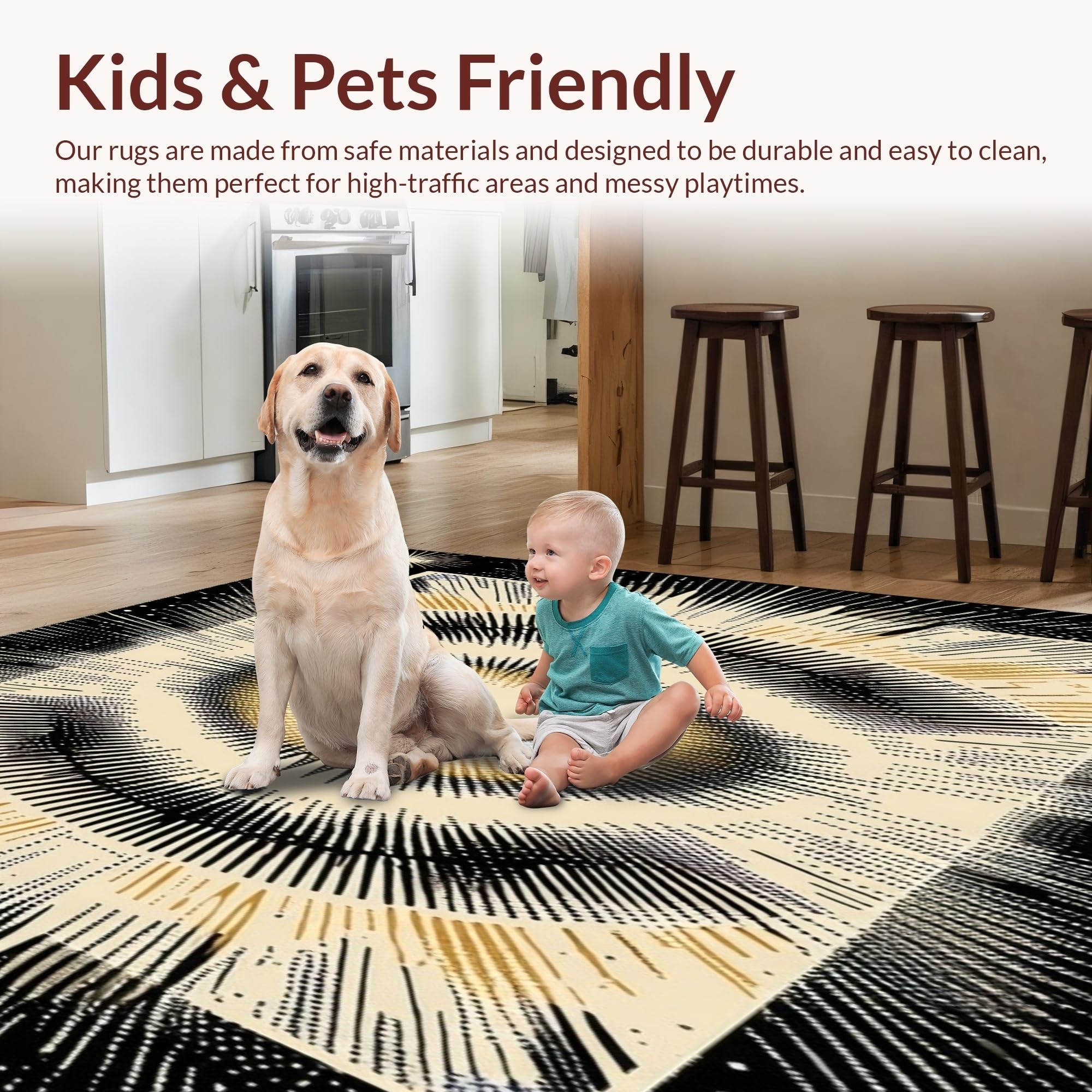 Ultra Soft Area Rug, Non Slip, Stain Resistant, Washable Area Rugs for Living Room, Bedroom, Boho Chic Accent Beige & Black Geometric Starburst(Beige) Overview: