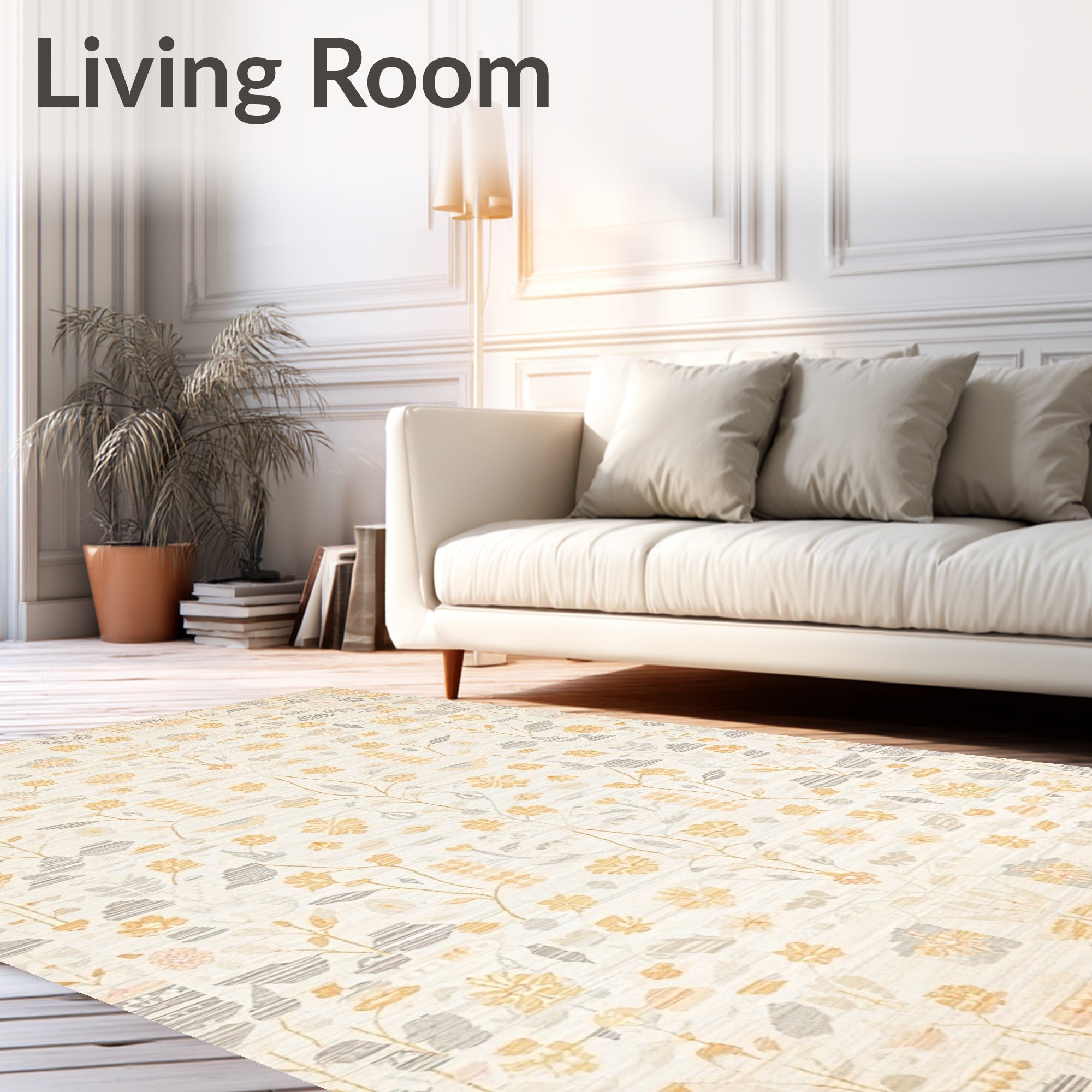 Ultra Soft Area Rug, Non Slip, Stain Resistant, Washable Area Rugs for Living Room, Bedroom, Boho Chic Area Linear Floral Motif Decorative Contemporary(Beige) Overview: