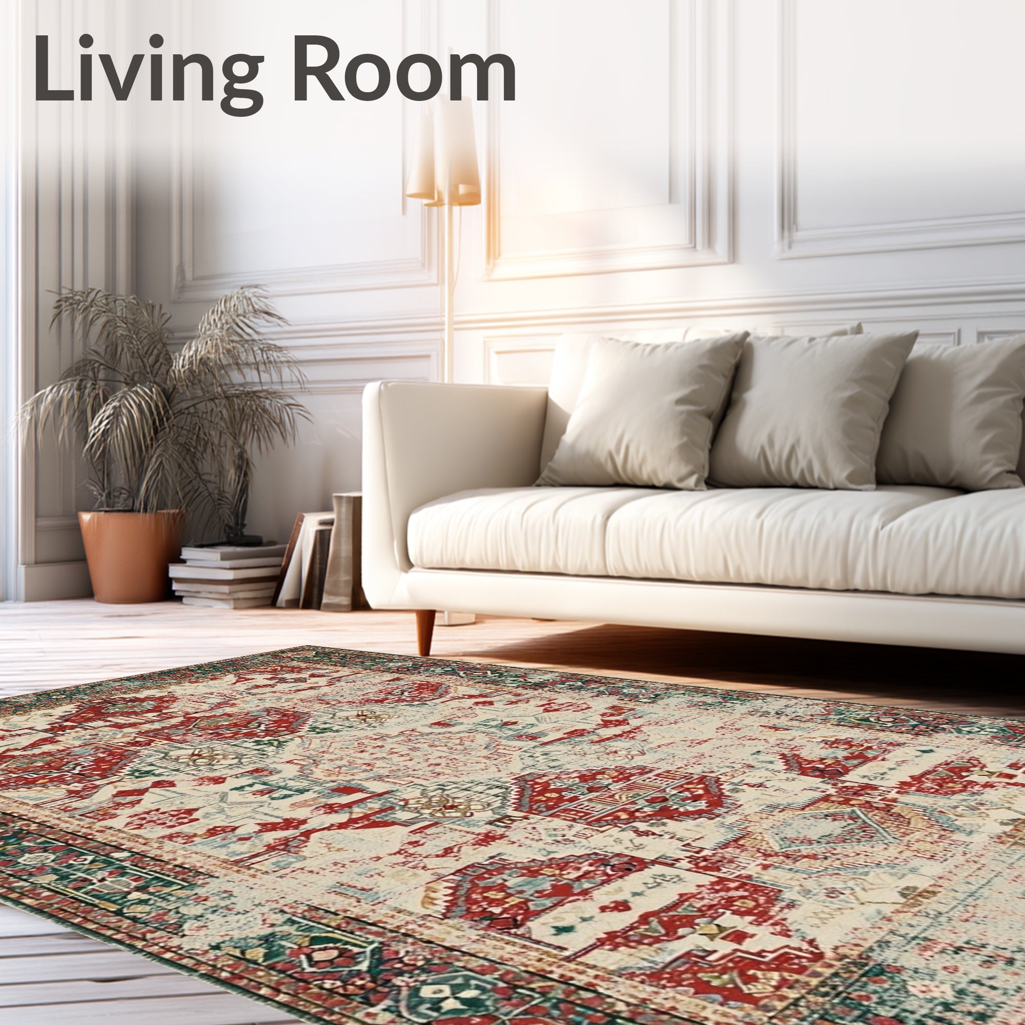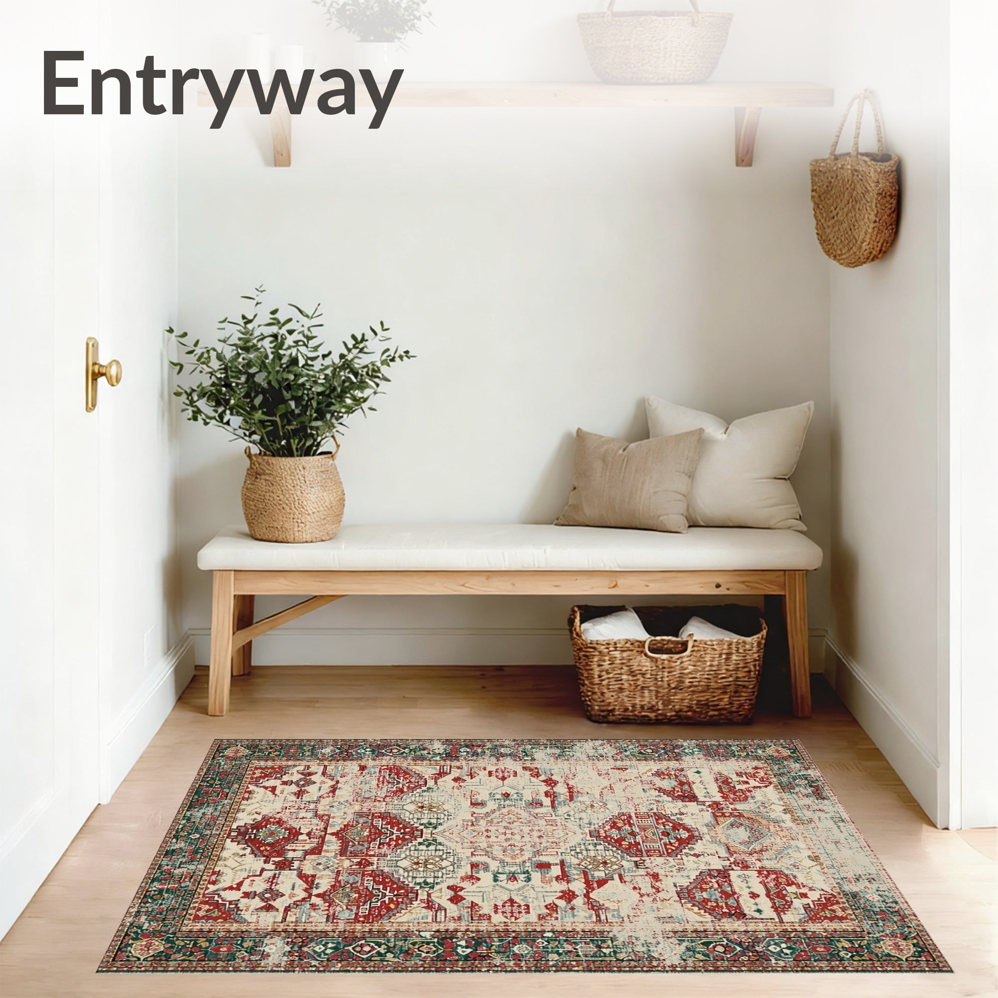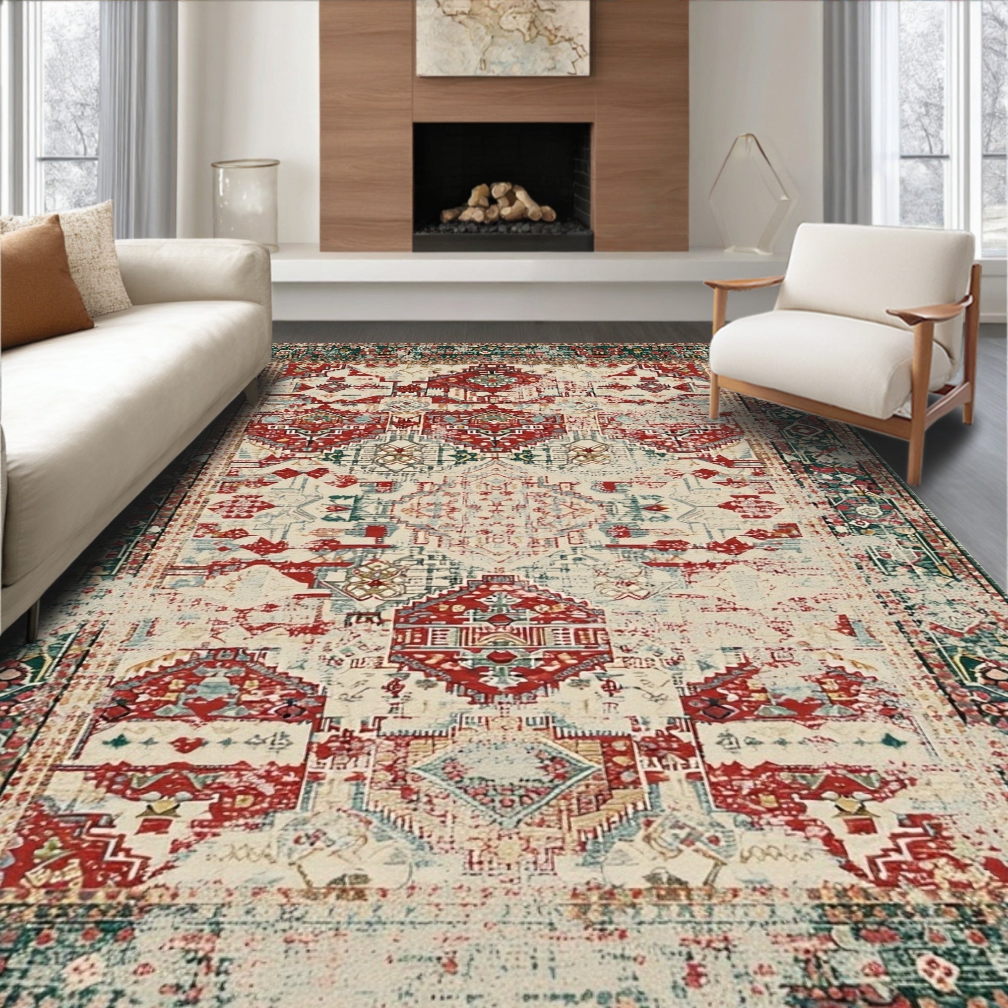 Ultra Soft Area Rug, Non Slip, Stain Resistant, Washable Area Rugs for Living Room, Bedroom, Boho Chic Area Low Pile Abstract Print(Red) Overview: