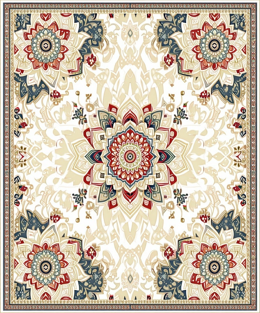 Flatwoven High Traffic Area Rug, Boho Chic Showcasing Blooms and Artistic Beige Filigree, Non Slip, Stain Resistant, Washable Area Rugs for Living Room, Bedroom (Beige) Overview: