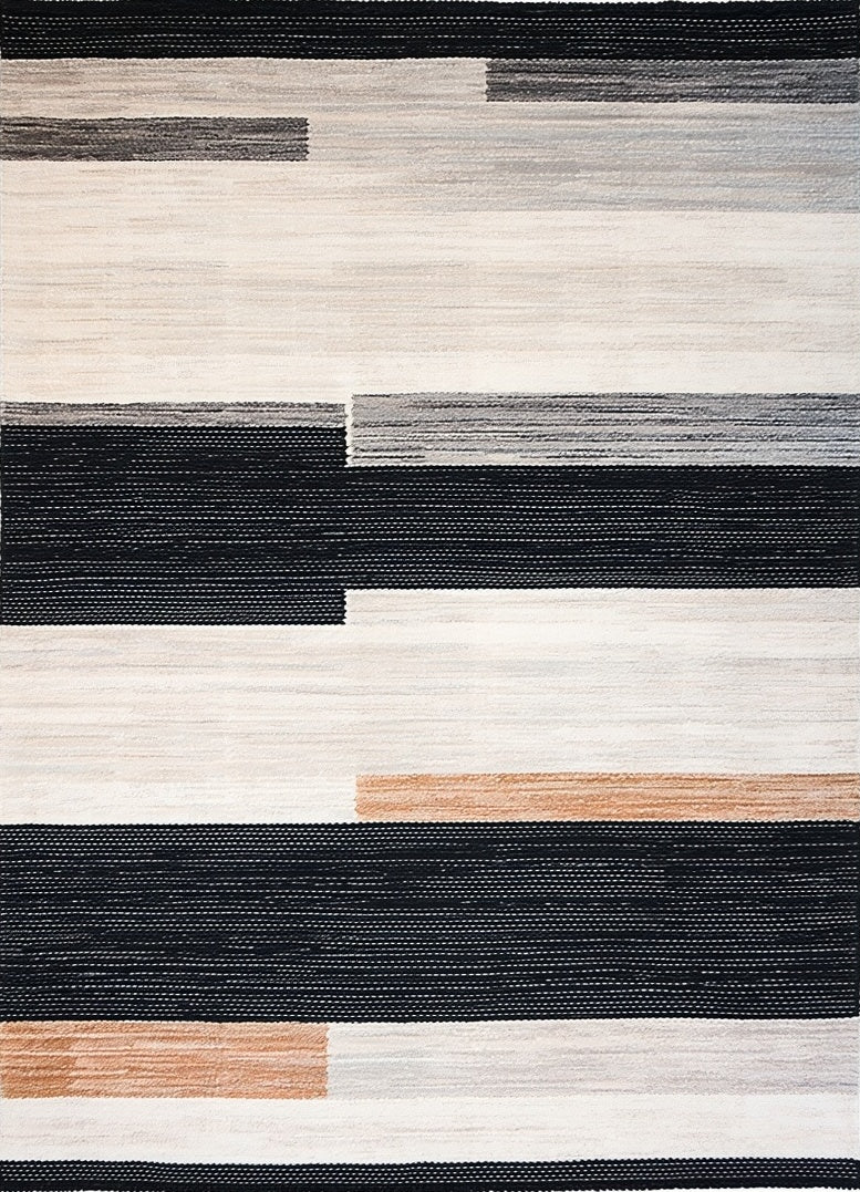 Ultra Soft Area Rug, Non Slip, Stain Resistant, Washable Area Rugs for Living Room, Bedroom, Boho Chic Black and Beige Area Abstract Stripe(Beige) Overview: