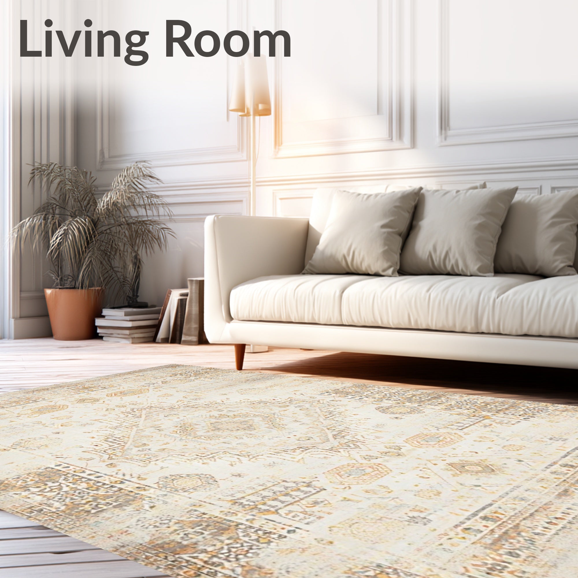 Ultra Soft Area Rug, Non Slip, Stain Resistant, Washable Area Rugs for Living Room, Bedroom, Boho Chic Hallway Faded Neutral Area(Beige) Overview: